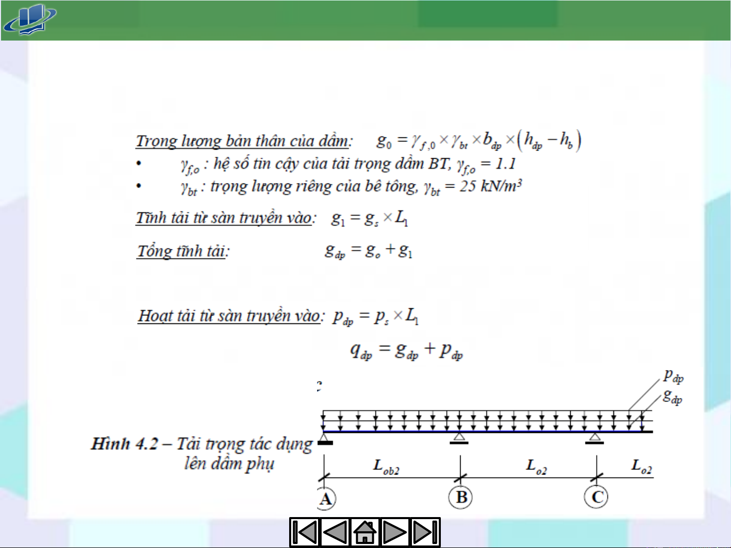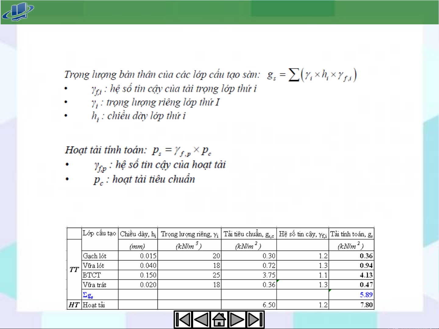 [2] Xác định tải trọng tác dụng: tĩnh tải và hoạt tải (tiêu chuẩn và tính toán