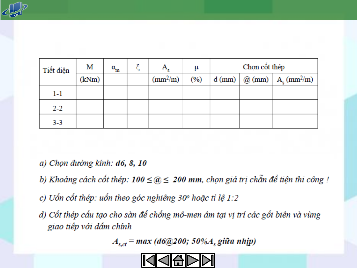 Bảng 3.2. Tính toán cốt thép cho sàn
