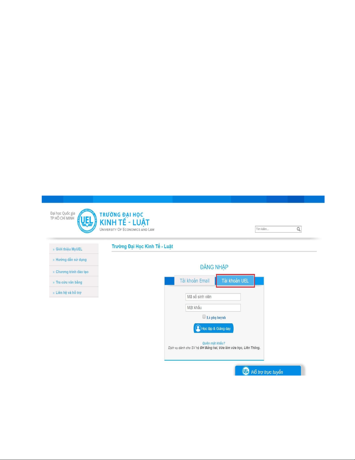 vào website, Anh/Chị nhấp vào biểu tượng “Tài khoản UEL”