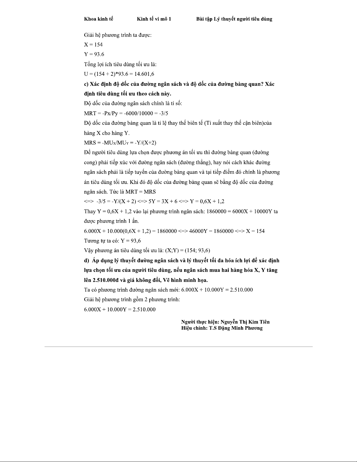 Hướng Dẫn Giải Bài Tập Kinh Tế Vi Mô - CKT203