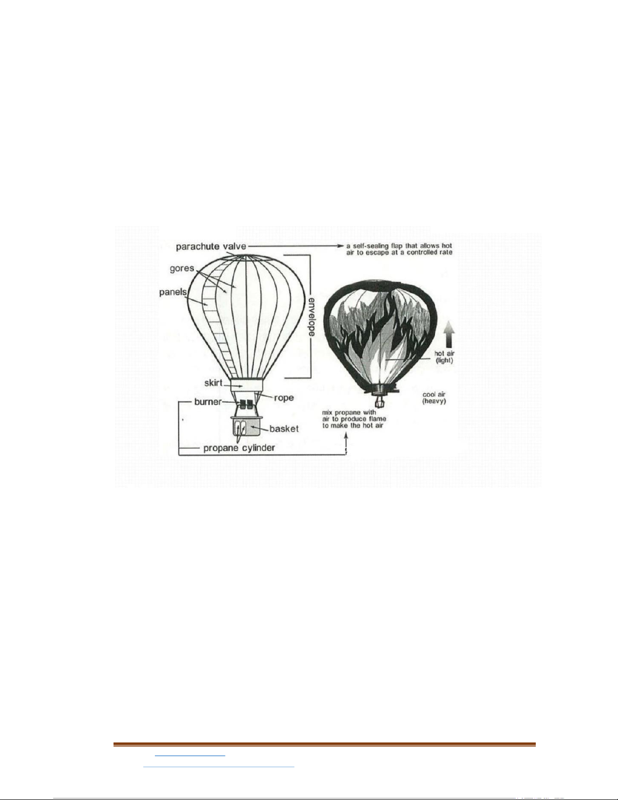 • Paragraph 3: report on the parts below the envelope, including the burner to produce the hot air