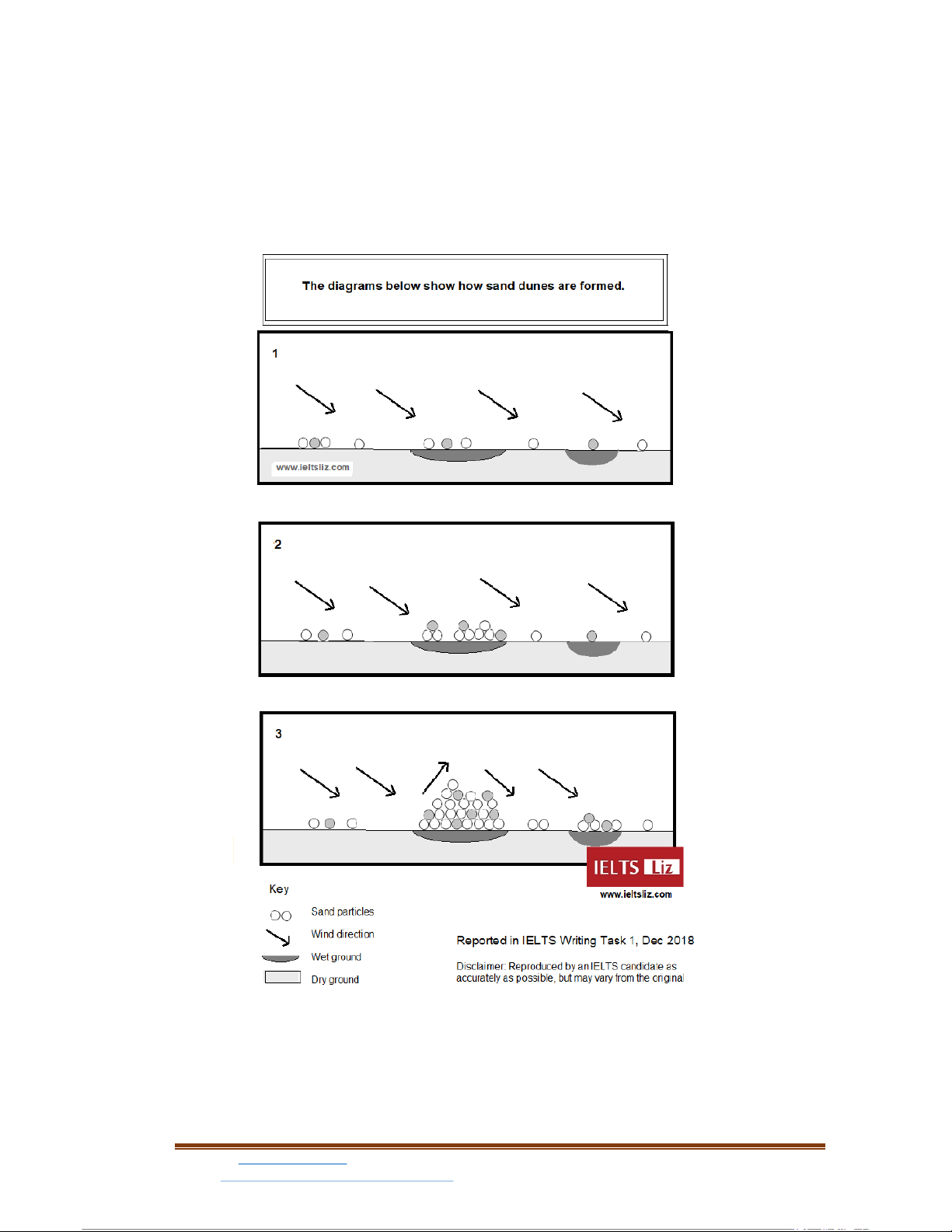 Task 1: The diagrams illustrate the formation of sand dunes from sand particles. + Website: www.ngocbach.com