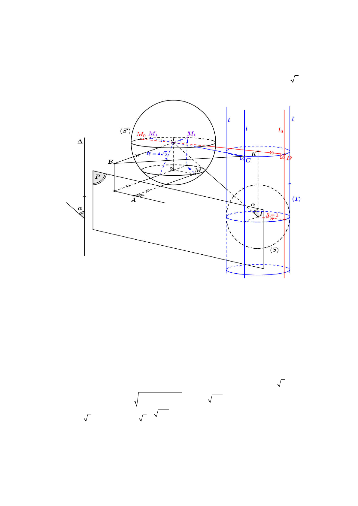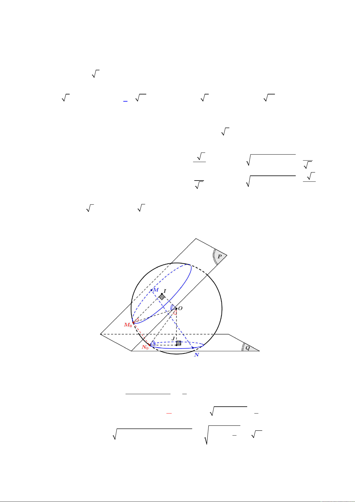 Giả sử hai đường tròn thiết diện của khi hai mặt phẳng P,Q cắt S là C , C có tâm lần lượt là I , J và 1 2 5 5 6 2 2 a MI R d ; ; O P d O P OI 2 2 bán kính lần lượt là ,