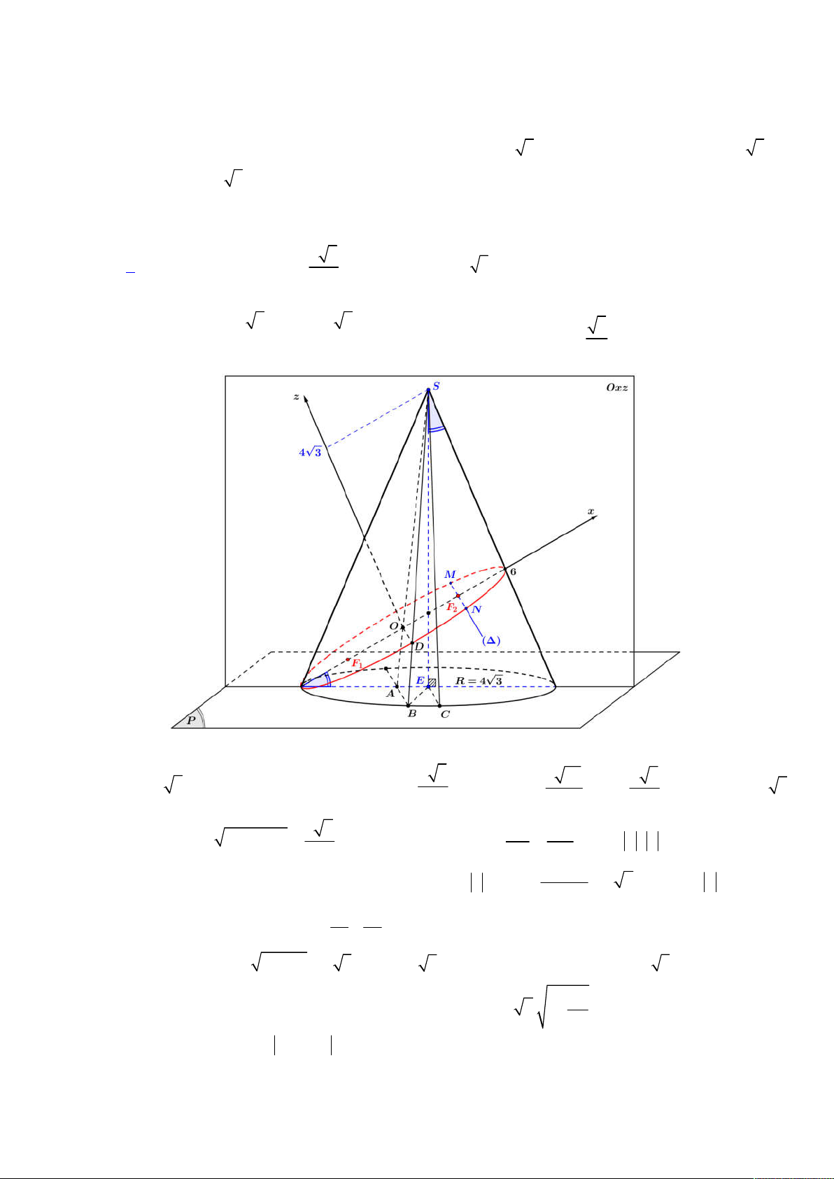 Câu 50: Trong không gian với hệ tọa độ Oxyz , cho hình nón N có đỉnh O 0;0;0 , có độ dài đường sinh là 4 2
