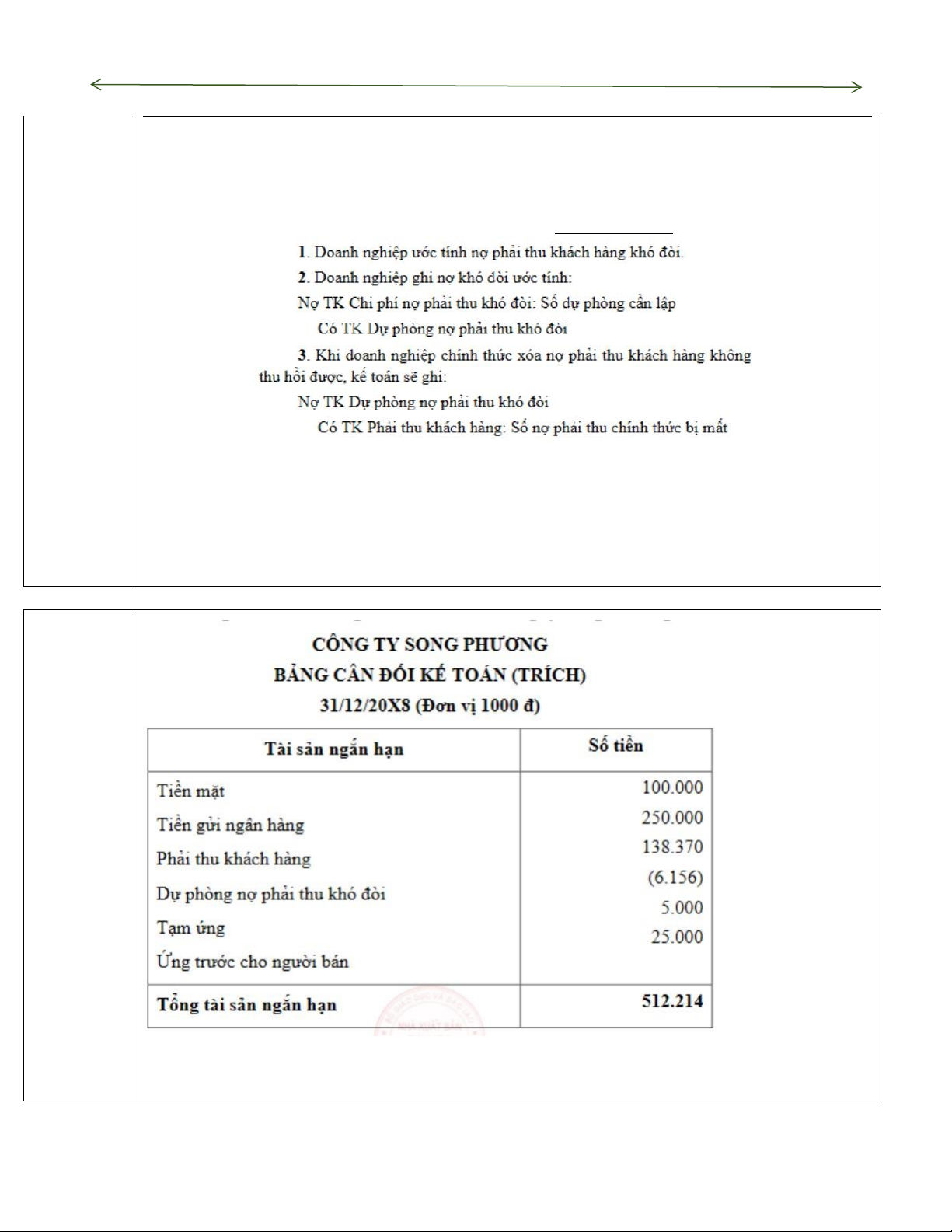 5/ Kế toán dự phòng phải thu khó đòi: 2 phương pháp: (1) Xóa sổ trực tiếp (2) Lập dự phòng phải thu khó đòi (1)
