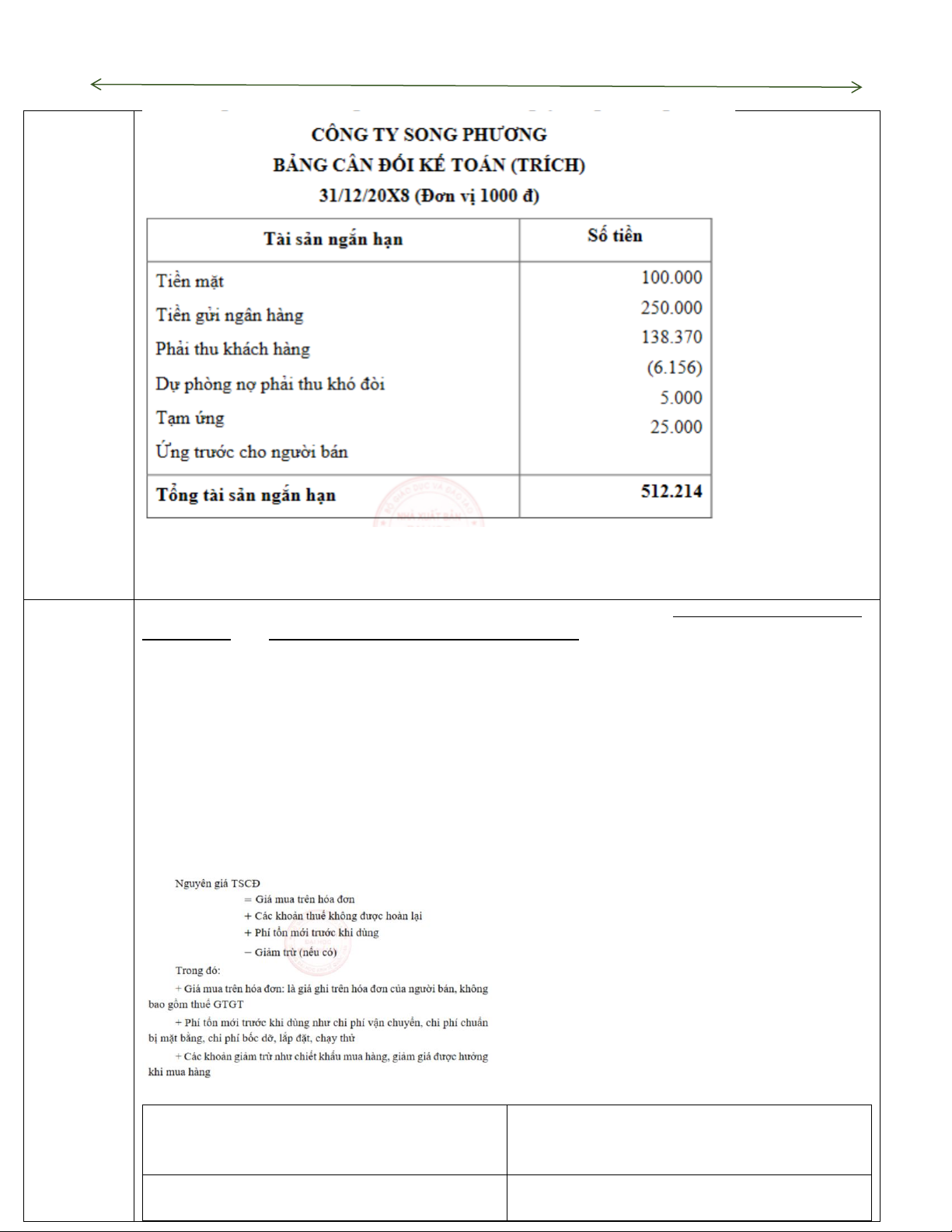 2/ Các khoản đầu tư tài chính ngắn hạn (đầu tư cổ phiếu, 2/ Nợ dài hạn