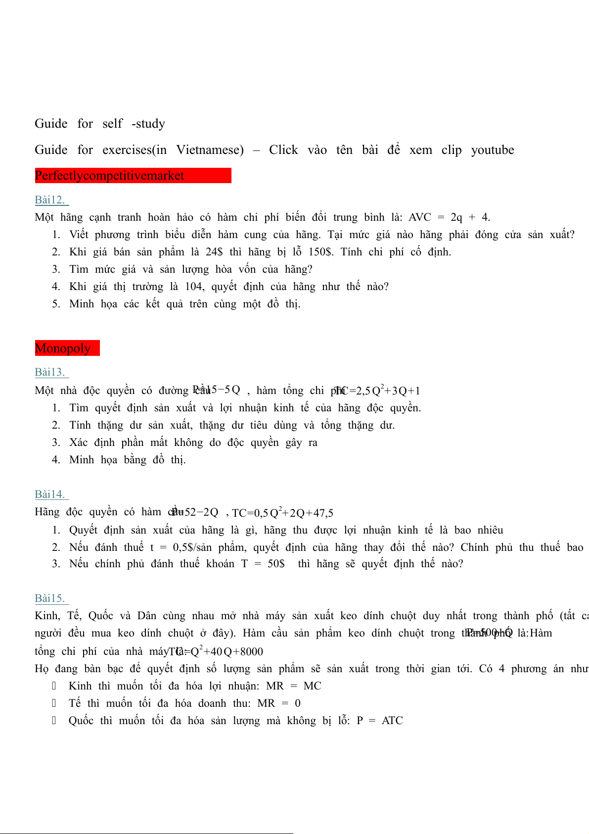 Perfectly competitive market Bài 12.