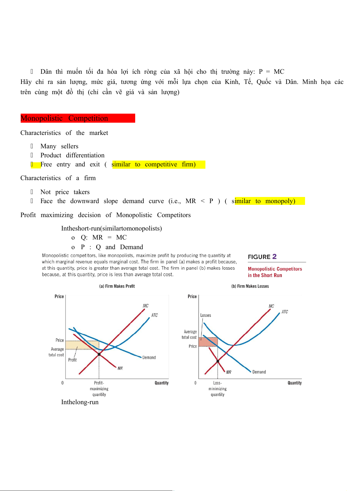 Kinh thì muốn tối đa hóa lợi nhuận: MR = MC
