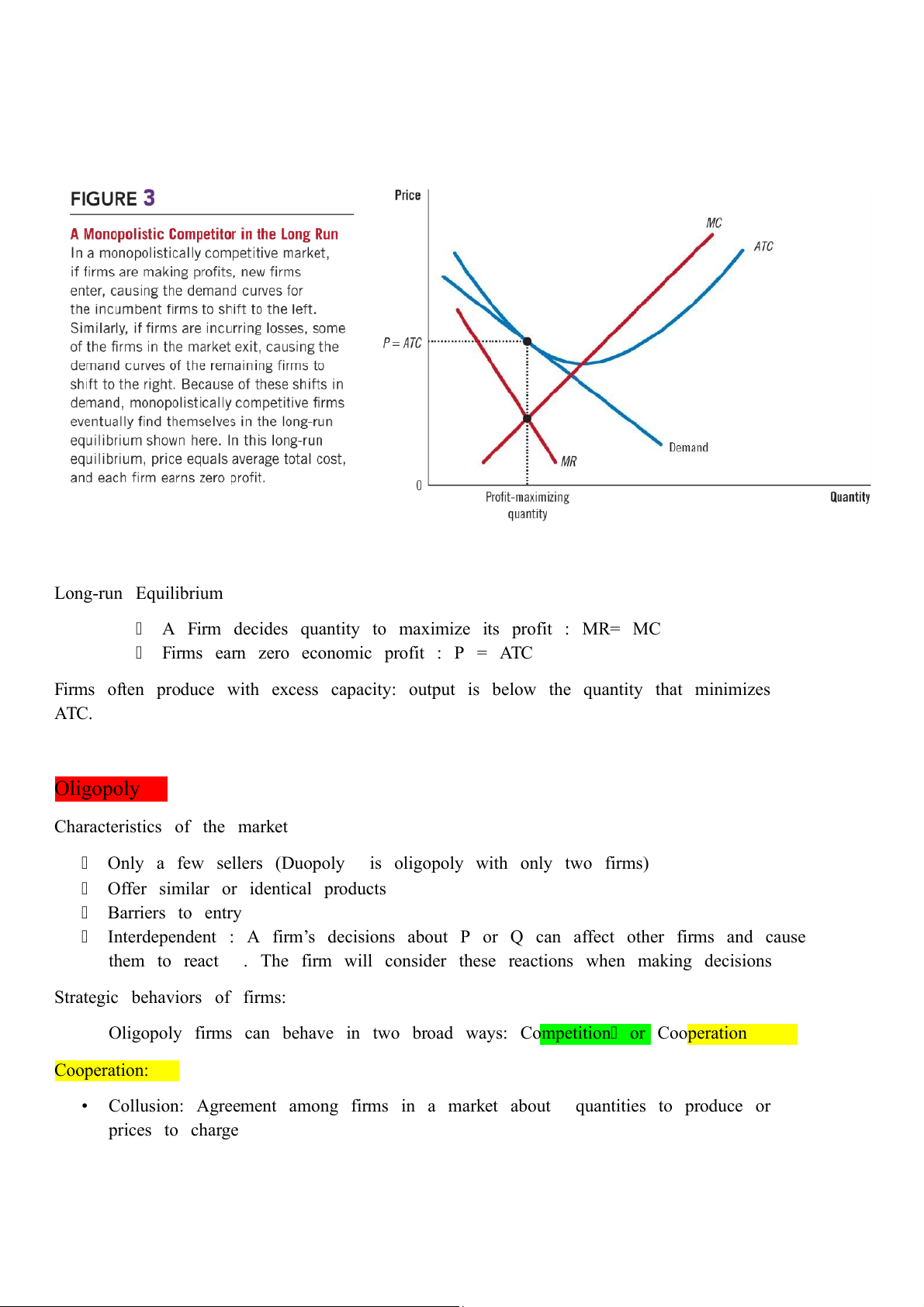 Firms often produce with excess capacity: output is below the quantity that minimizes ATC. Oligopoly