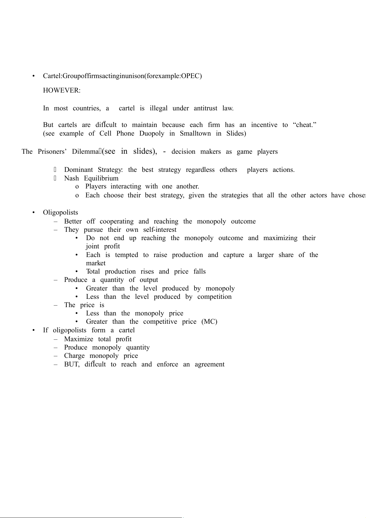 Cartel :Group of firms acting in unison (for example : OPEC) HOWEVER: