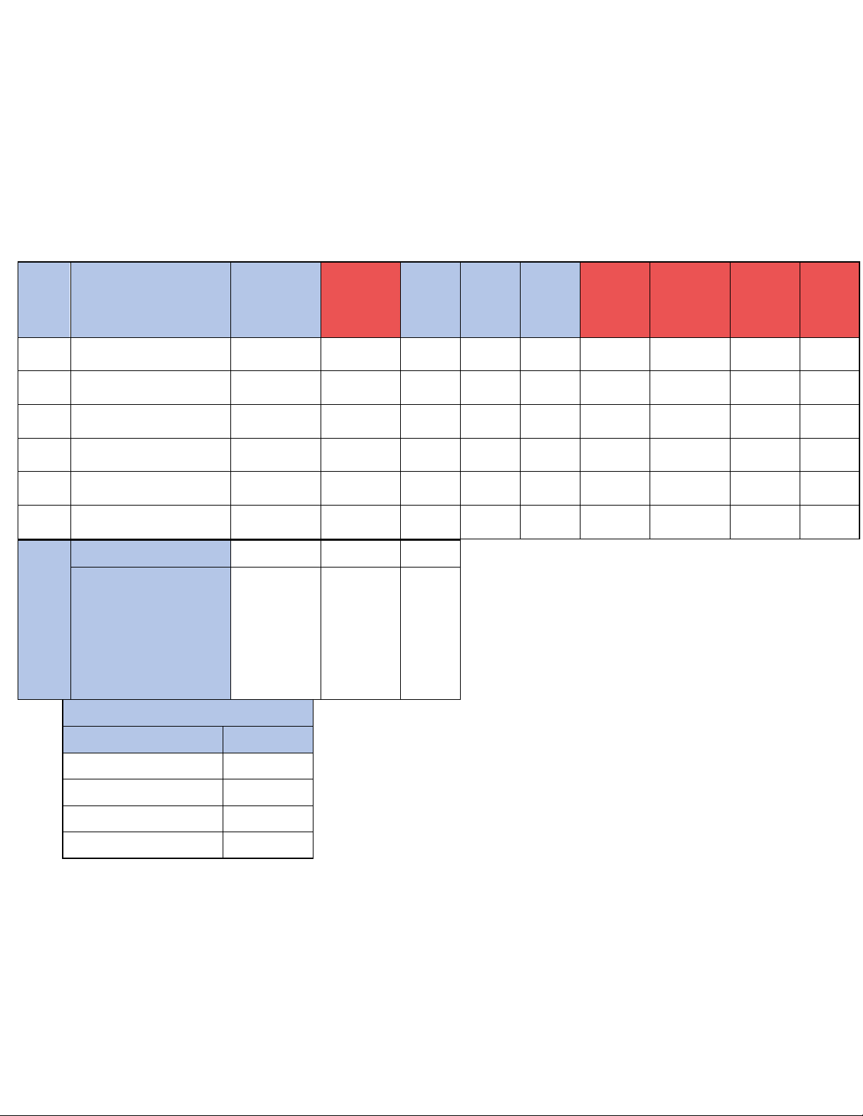 Tính toán và điền vào ô trong hàng/cột đỏ thích hợp, trong đó