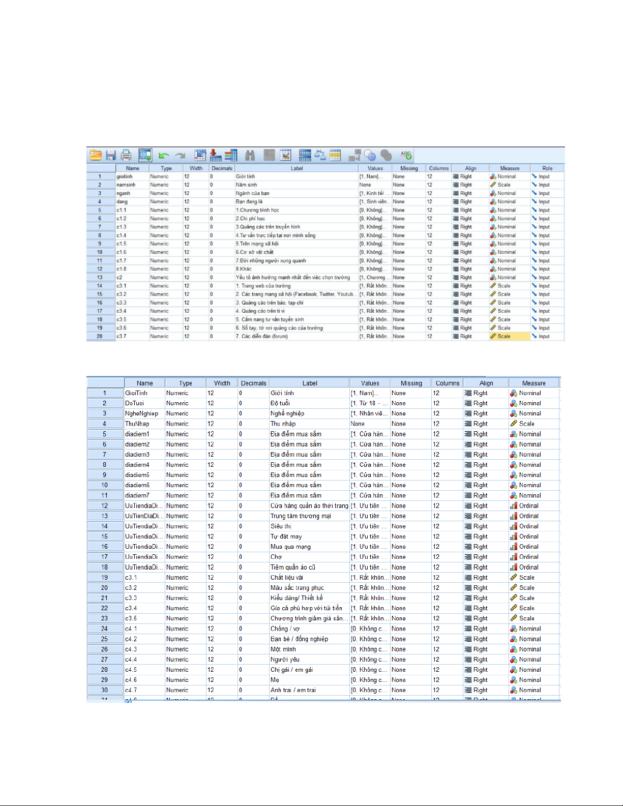 Câu 1: Chuyển file Excel thành file data của SPSS. Khai báo thuộc tính cho một số câu mã