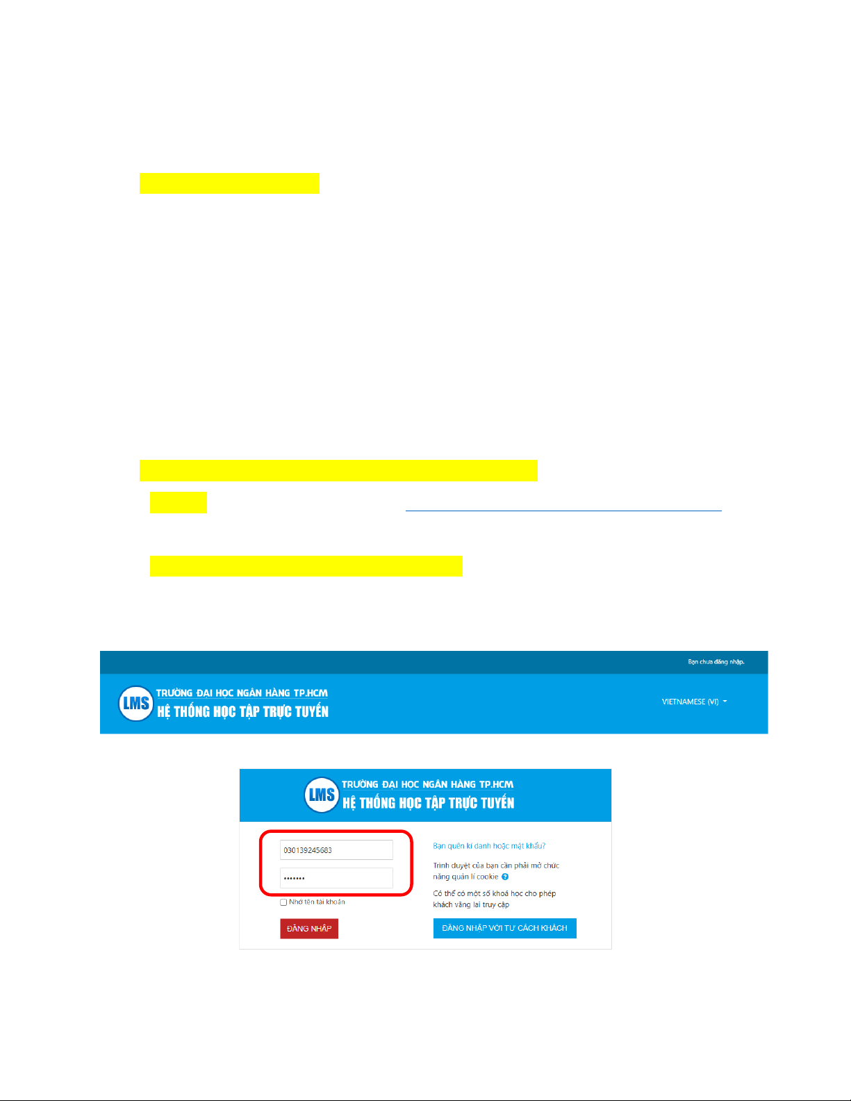 • Bước 2: Đăng nhập vào hệ thống LMS Hub bằng tài khoản sinh viên (tài khoản đăng