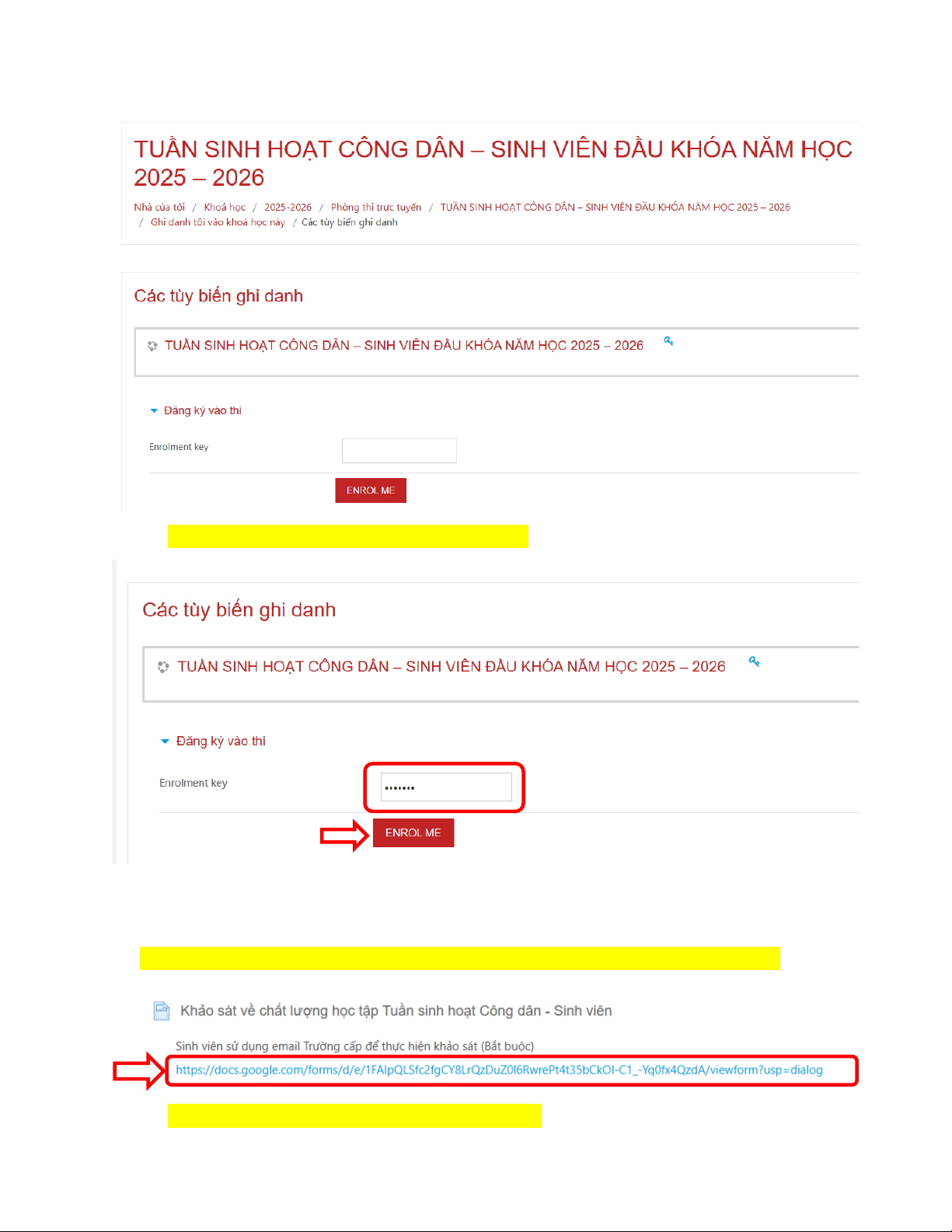 • Bước 3: Nhập mã để đăng ký vào phòng thi: HUB2025 sau đó nhấn Enrol me