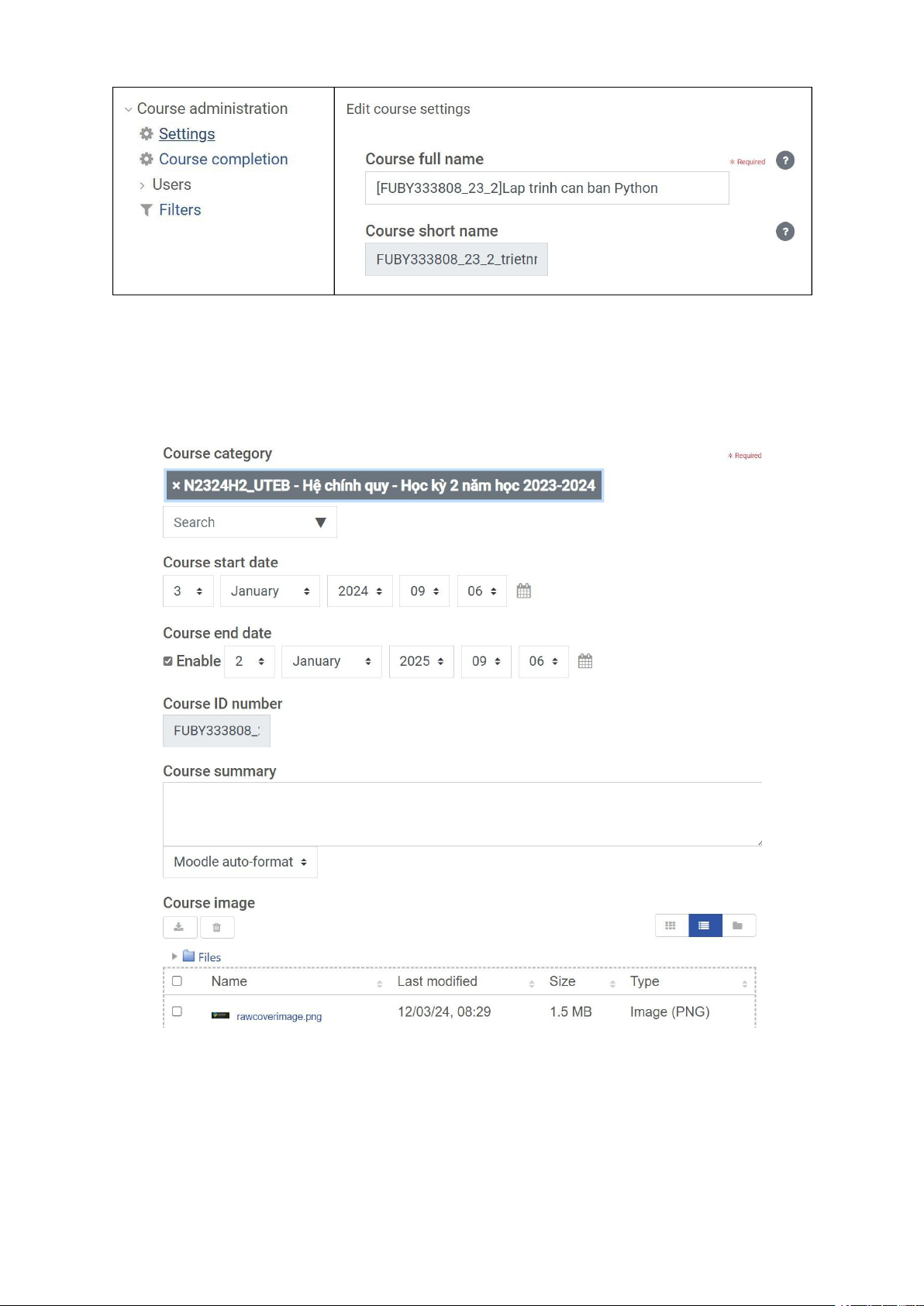 xe cài đặt lớp học >> Course administration >> Settings Trang 15
