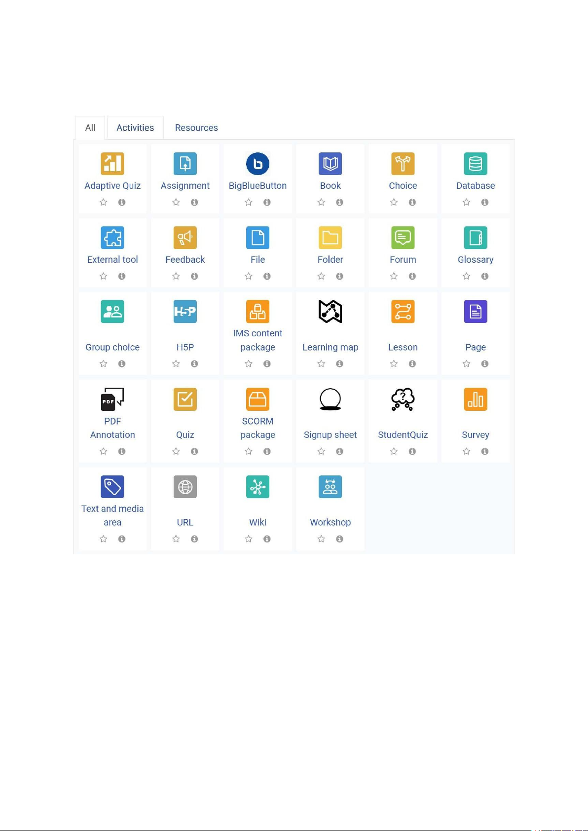Có tổng cộng 28 loại hoạt động học tập đã được cài đặt trong LMS. Các hoạt động