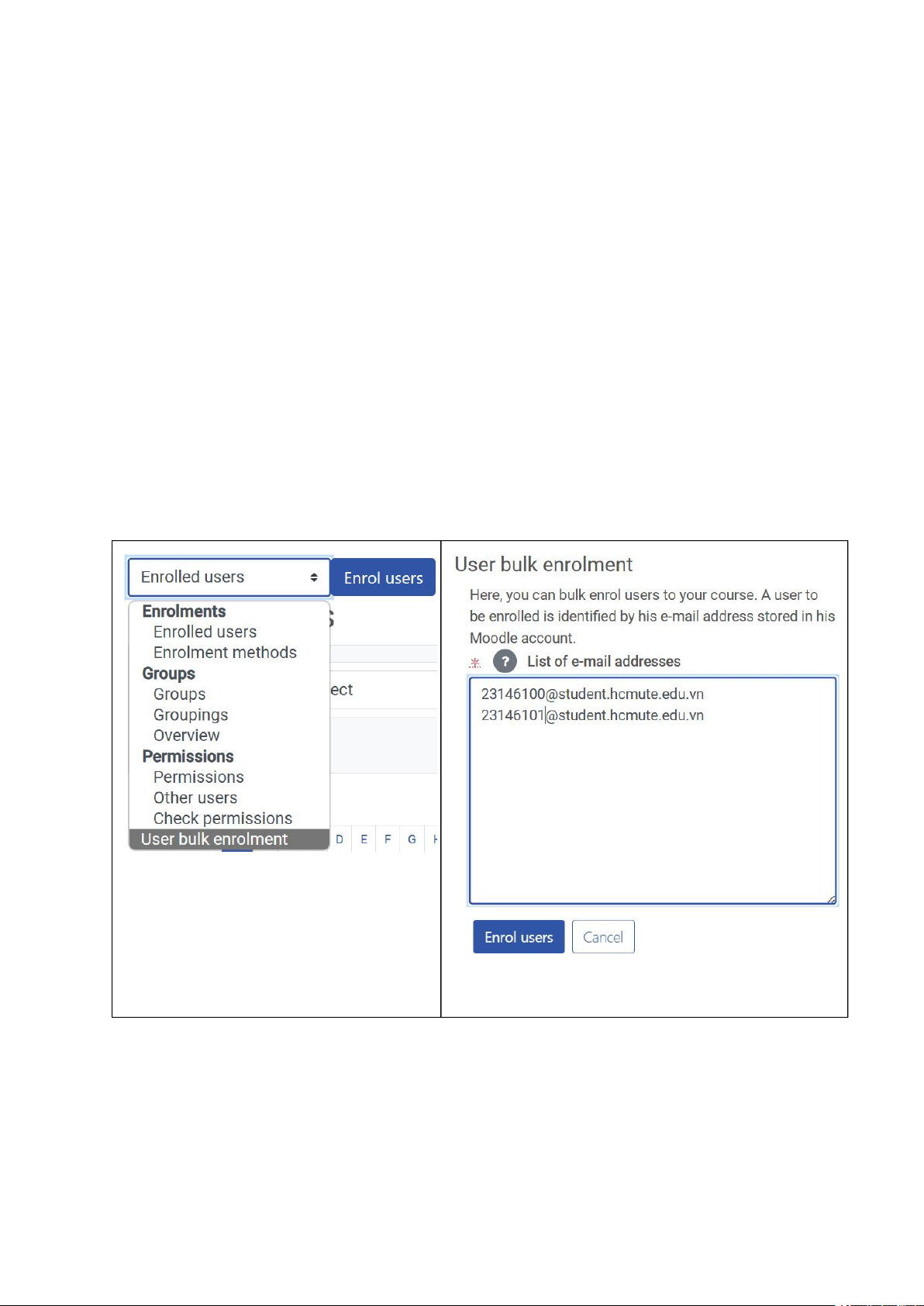xuống như hình 11. Sau khi kích hoạt, giao diện User bulk enrolment xuấy hiện như hình 12.