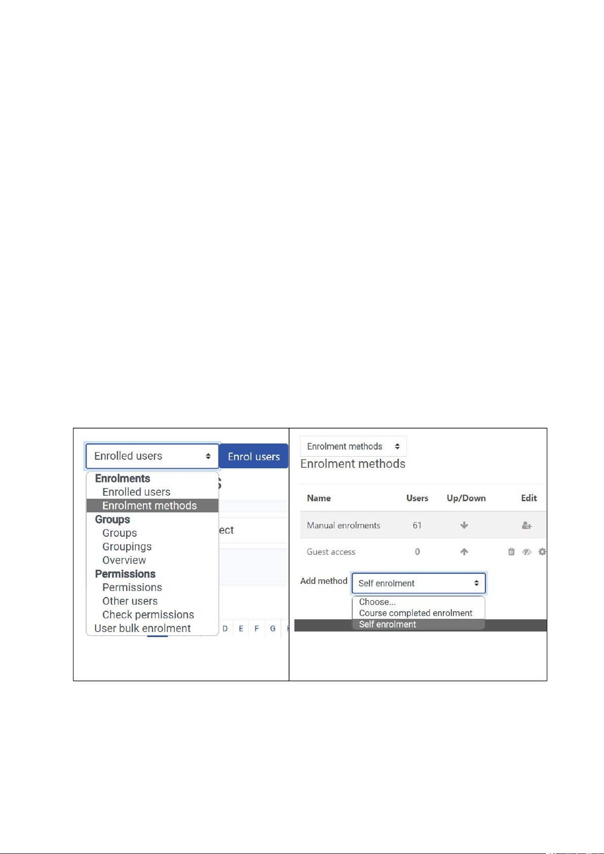 Để kích hoạt tính năng này, giảng viên chọn Enrolment methods (hình 13) sau đó