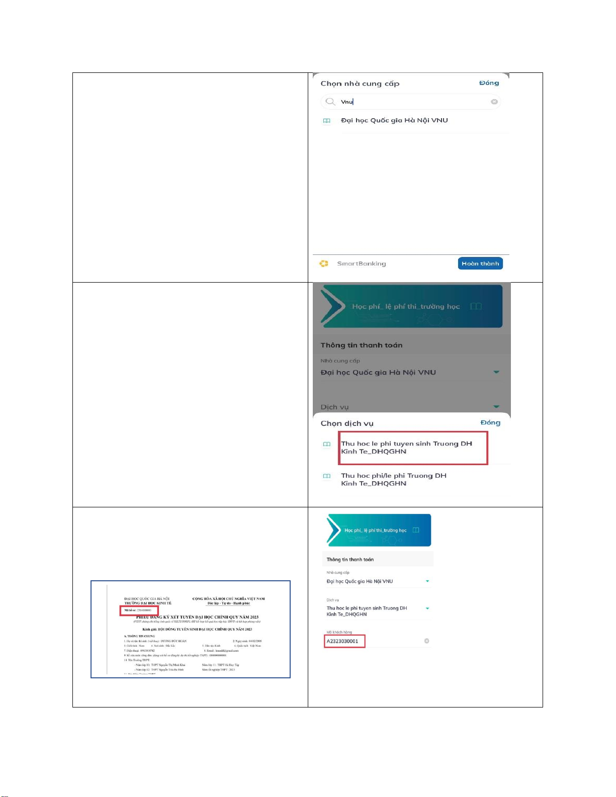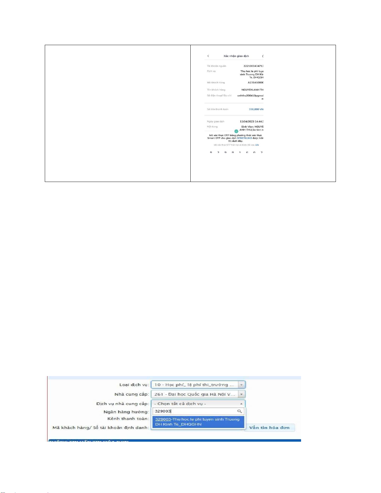 Bước 4: Chọn dịch vụ “Thu học Le phi tuyen sinh Truong ĐH Kinh Te- ĐHQGHN”