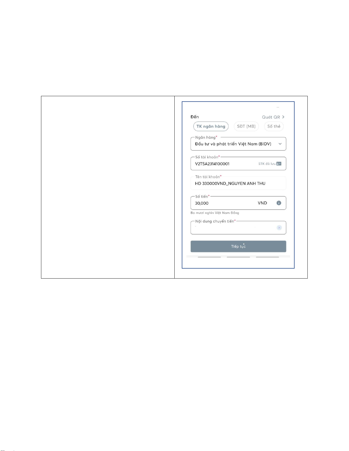 thông tin tên tài khoản (gồm số tiền + họ tên thí sinh)