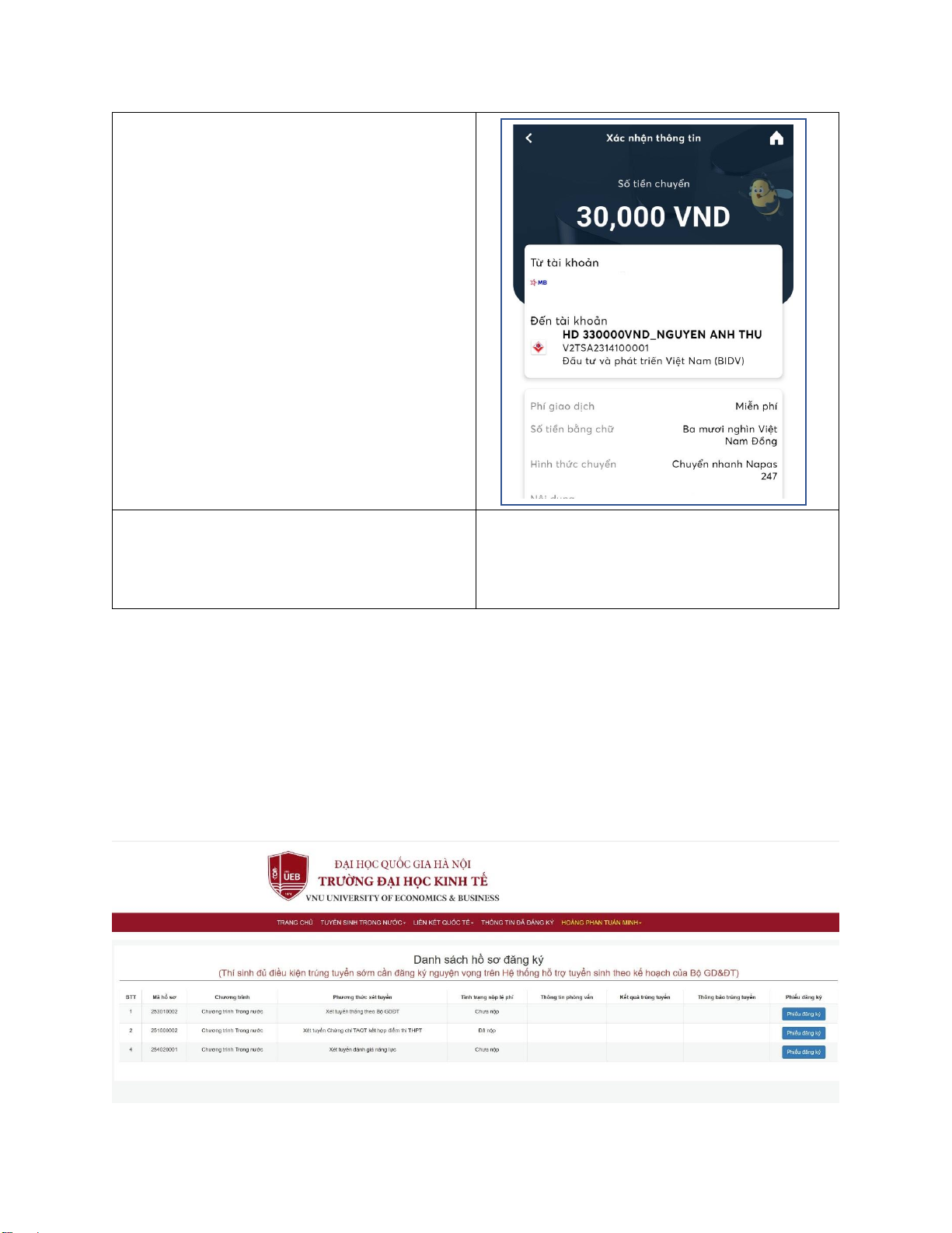 thực hiện thao tác nộp lệ phí xét tuyển theo hướng dẫn dưới đây: Lưu ý: