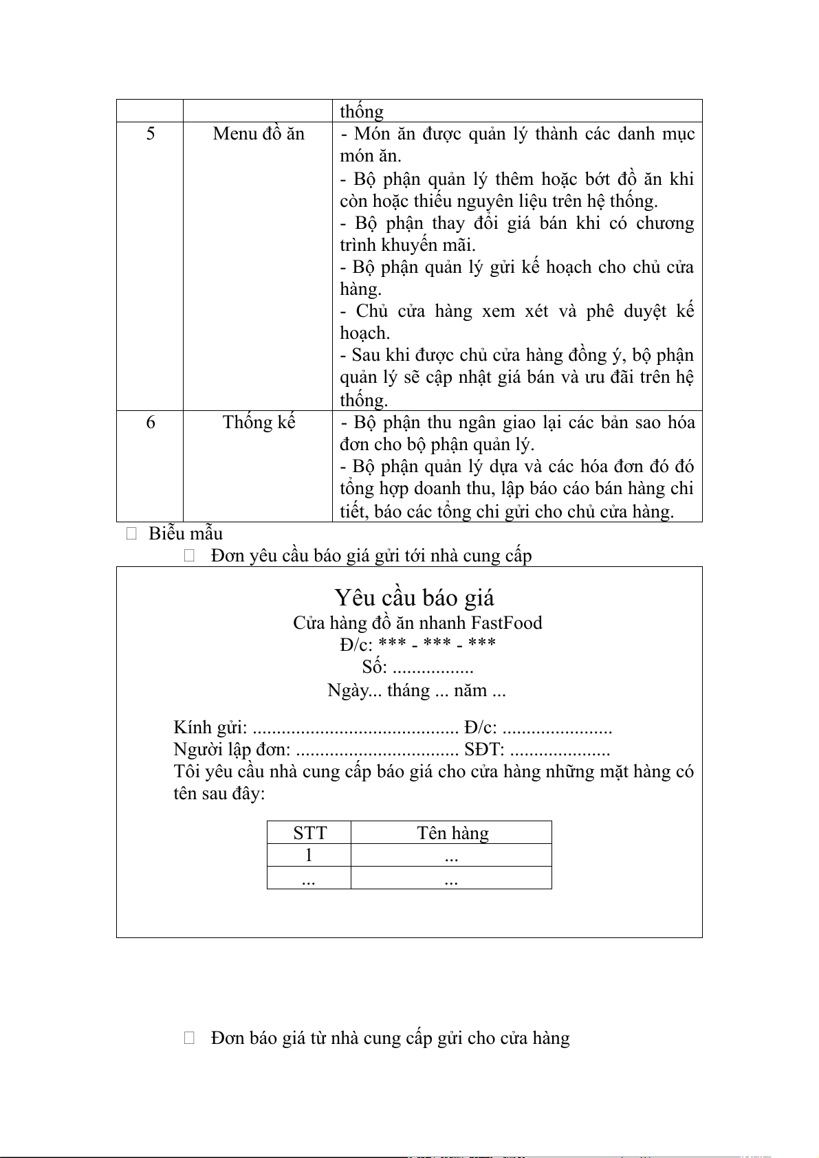 Tôi yêu cầu nhà cung cấp báo giá cho cửa hàng những mặt hàng có tên sau đây: STT Tên hàng 1 ... ... ...