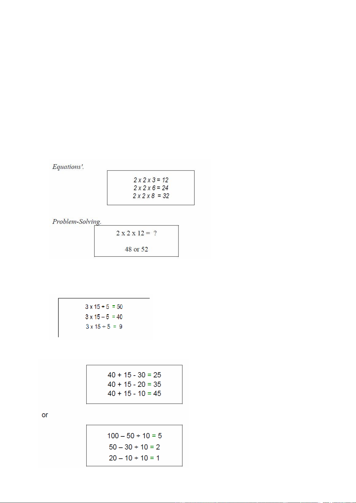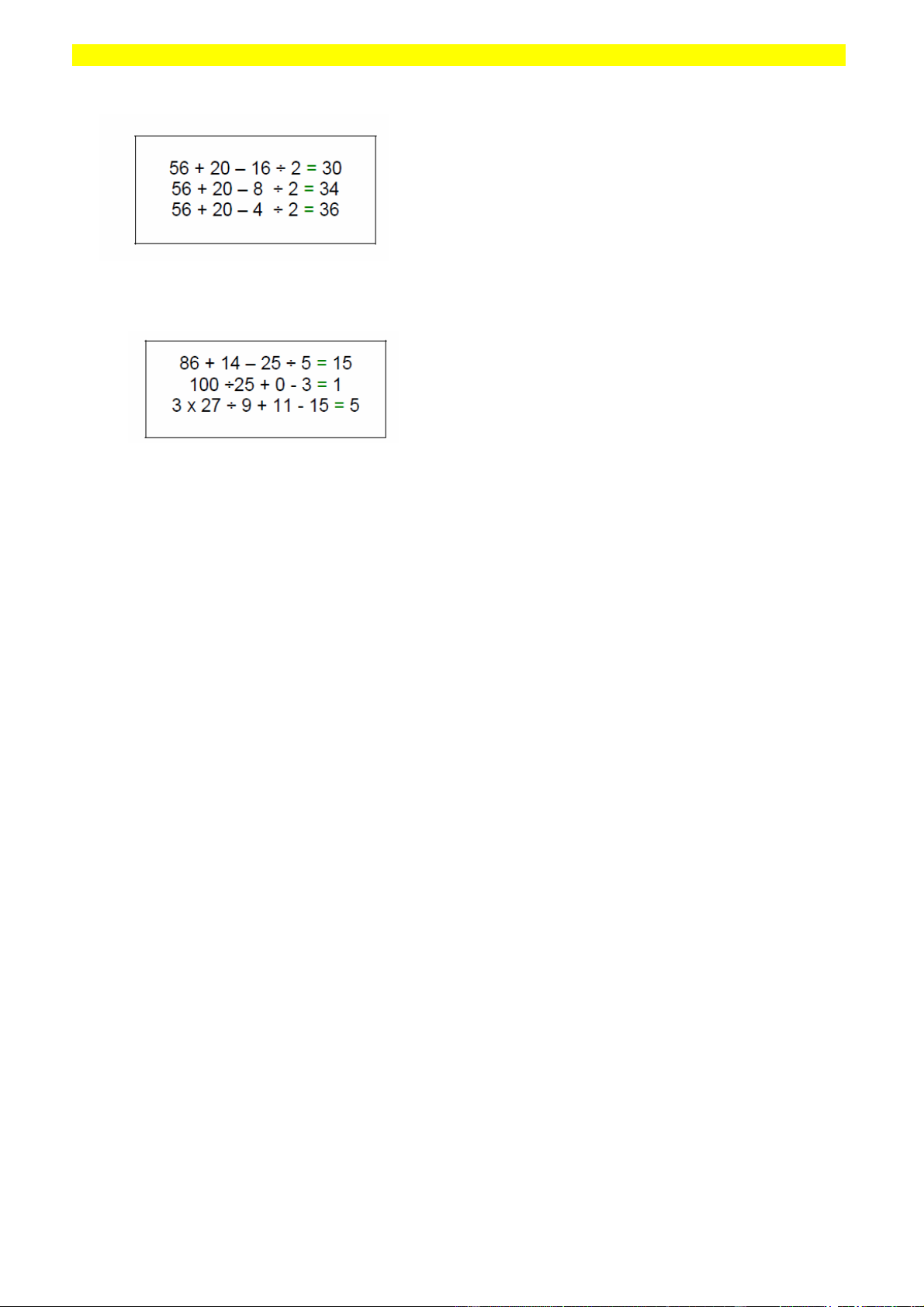 addition equations, do subtractions, fol owed by multiplication and division (at