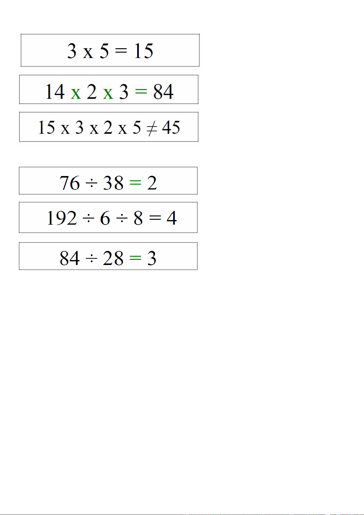 addition and subtraction, multiplication and division, but don’t mix the pairs e.g. 40+15-30=25, not 4+2*7.