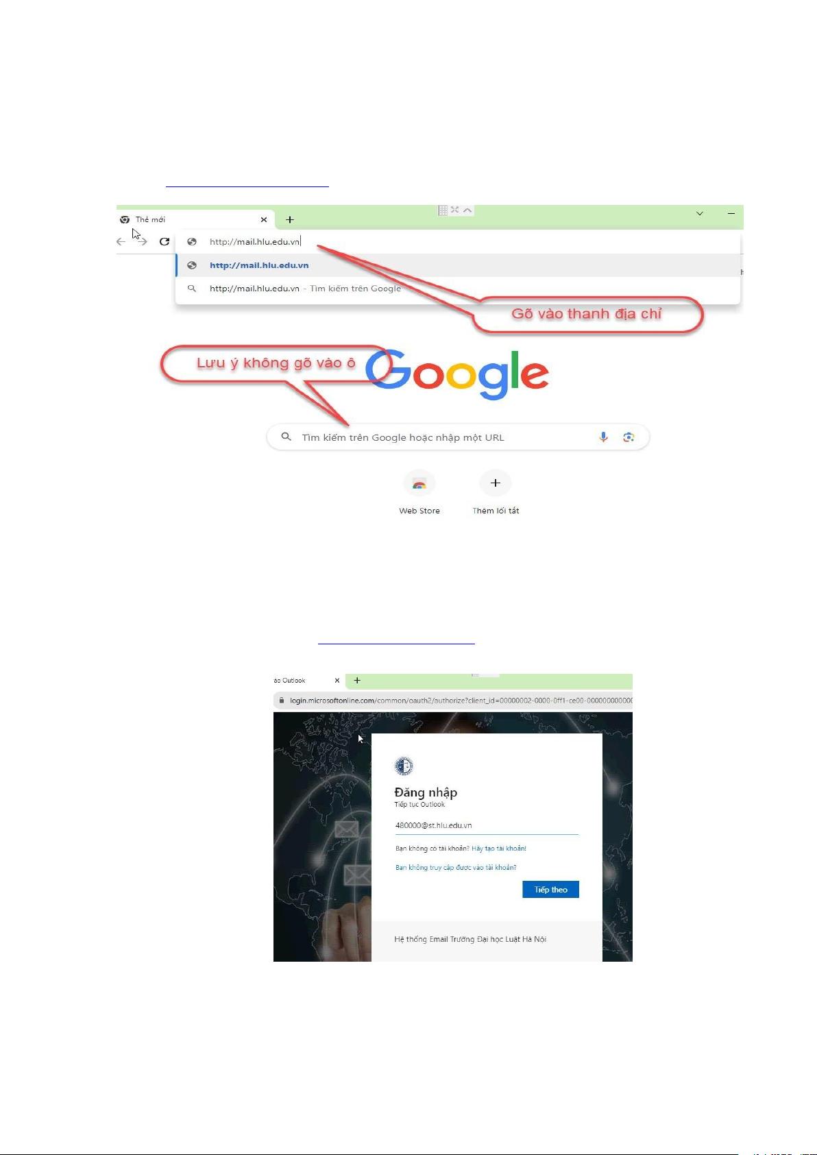 1. Sinh viên truy cập vào đường link trên thanh địa chỉ của trình duyệt: http://mail.hlu.edu.vn Hình 1