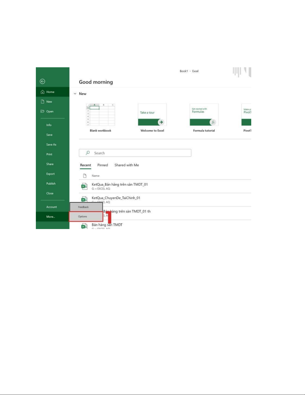 Bước 1: Trên thanh tab File, nhấp chuột vào Options.