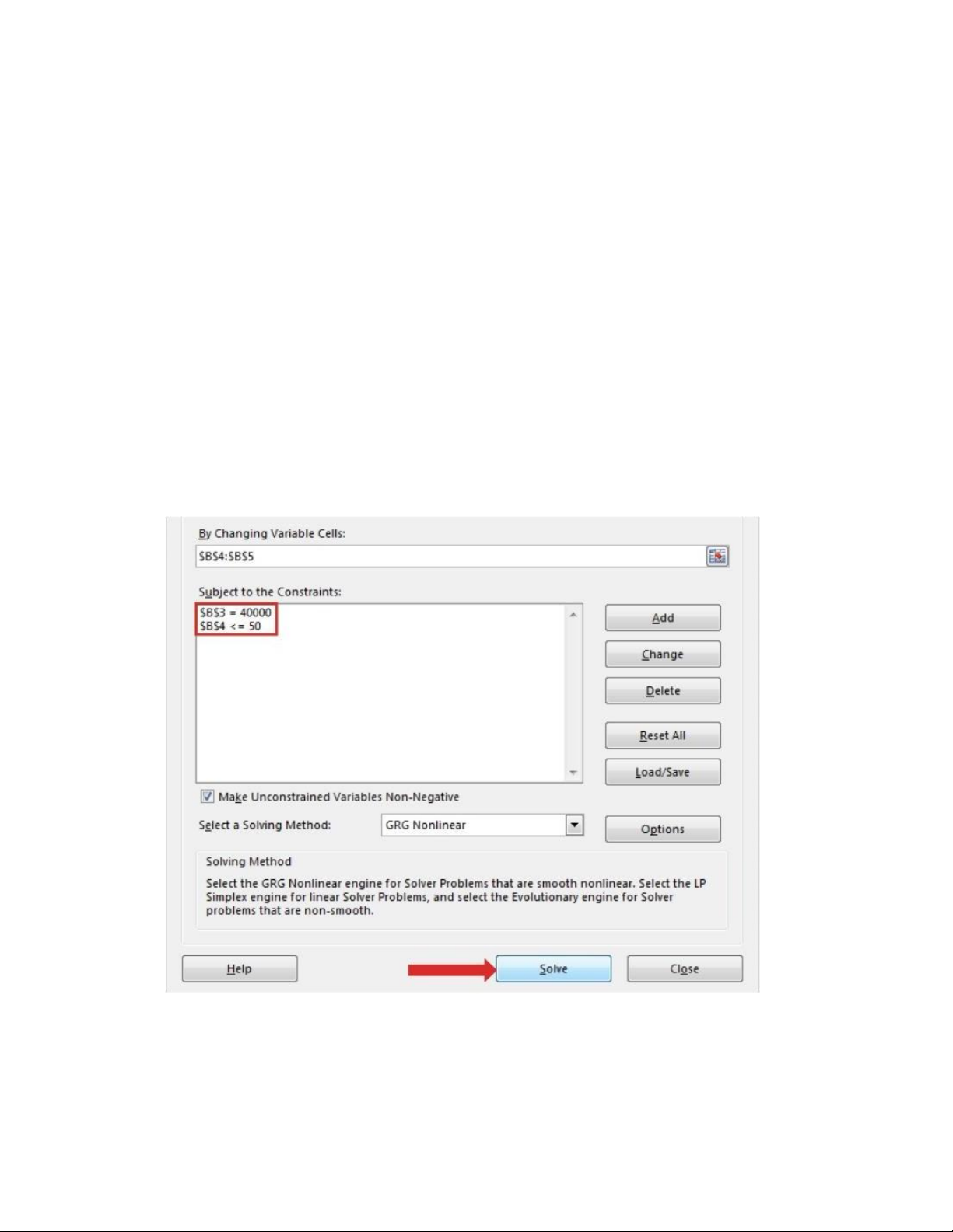 Sau khi đã thiết lập các tham số, hãy nhấp vào nút Solve ở phía dưới cửa sổ Solver Parameters để
