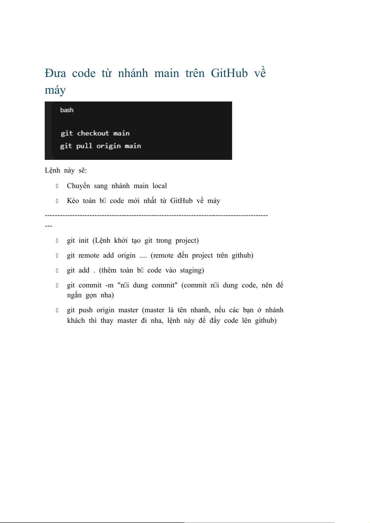 Đưa code từ nhánh main trên GitHub về máy Lệnh này sẽ: