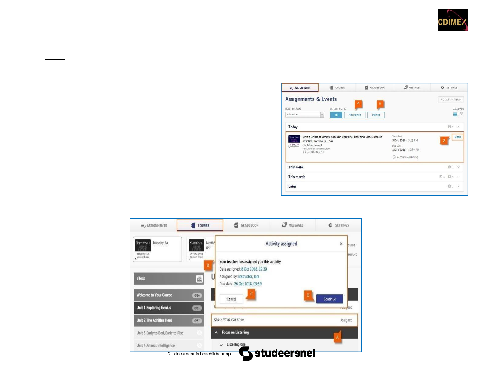 - Nếu bạn mở một hoạt động đã được giảng viên chỉ định cho bạn [A],