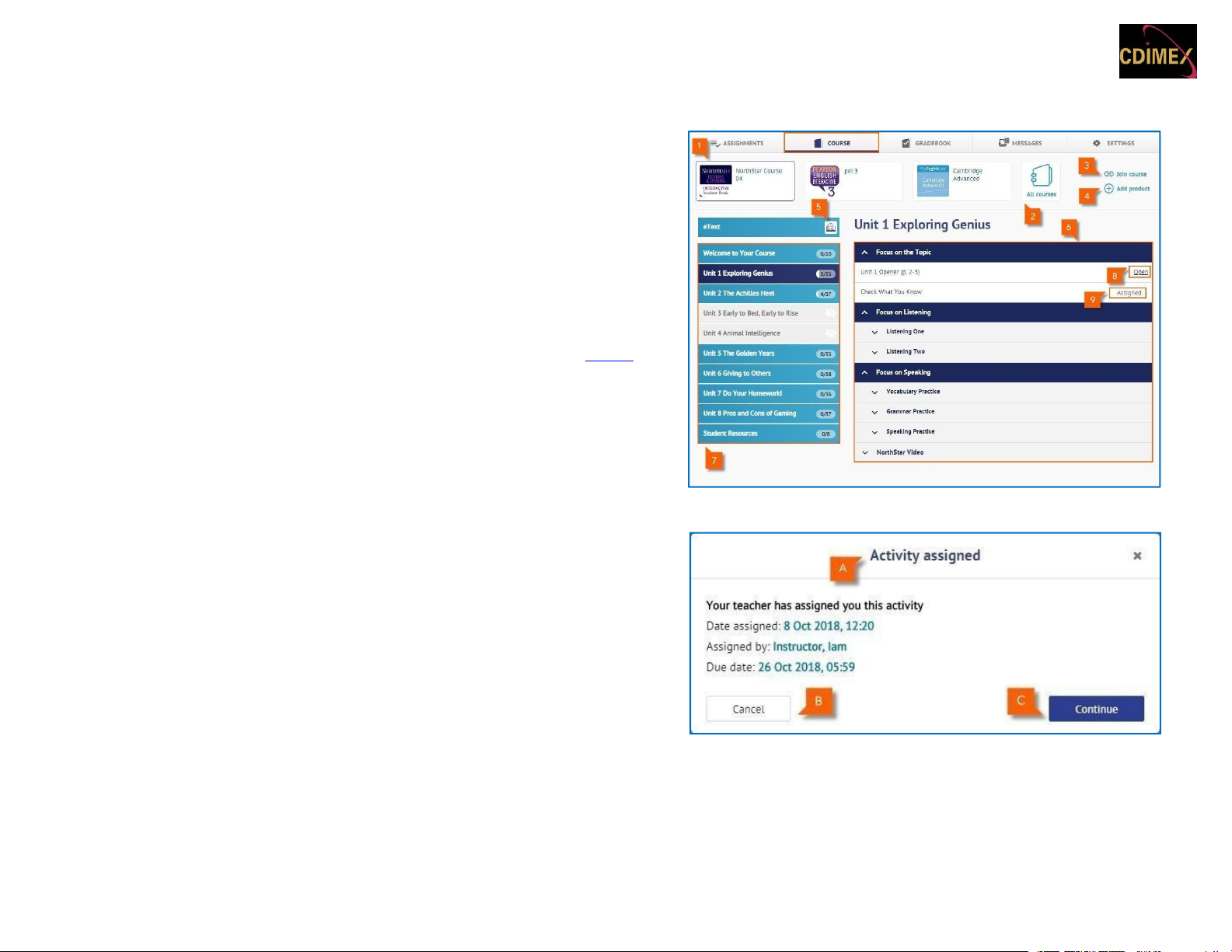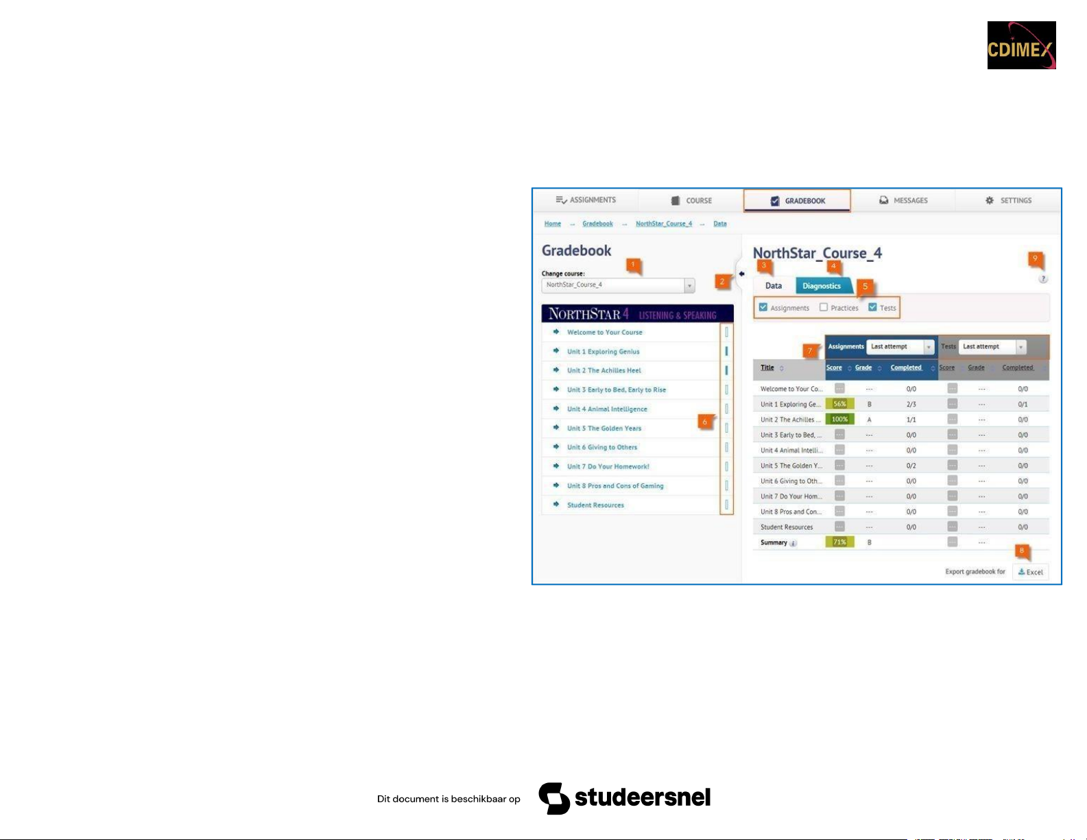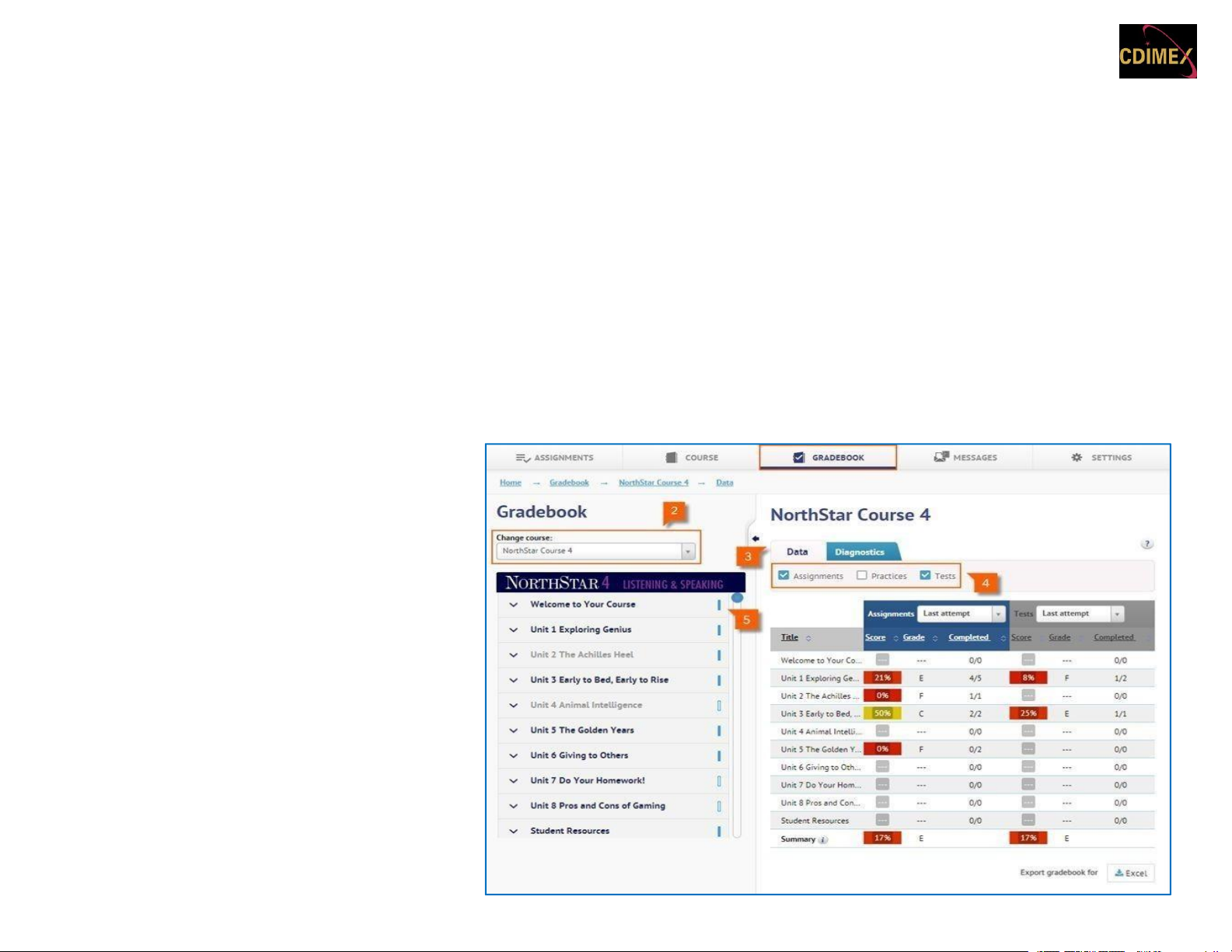 Tab Gradebook cho phép bạn truy cập điểm số của bạn và lưu hồ sơ về quá trình của bạn.