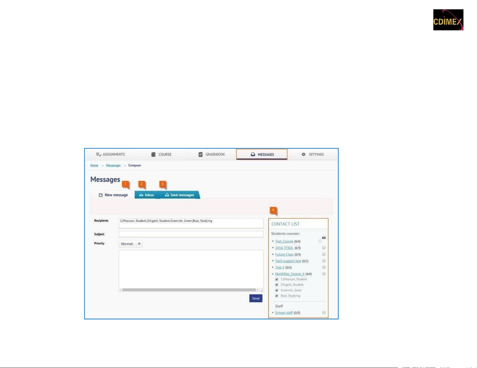 Tab Messages cho phép bạn giao tiếp với cả giáo viên và các sinh viên khác trong khóa học.