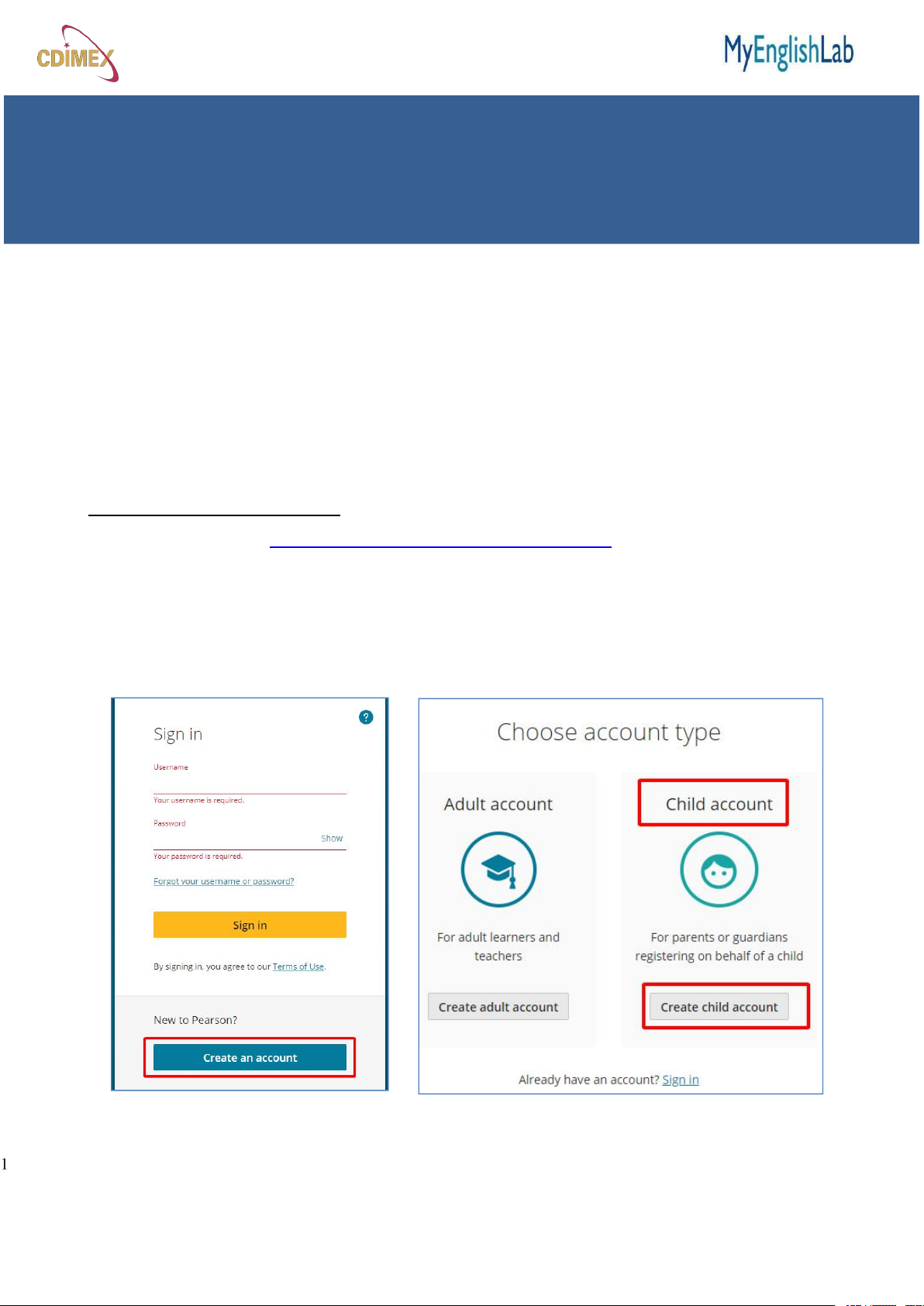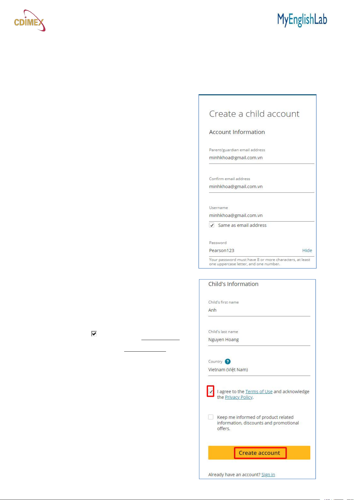 Bước 4: Xuất hiện bản Create a child account. Sinh viên điền đầy đủ các thông tin theo yêu cầu