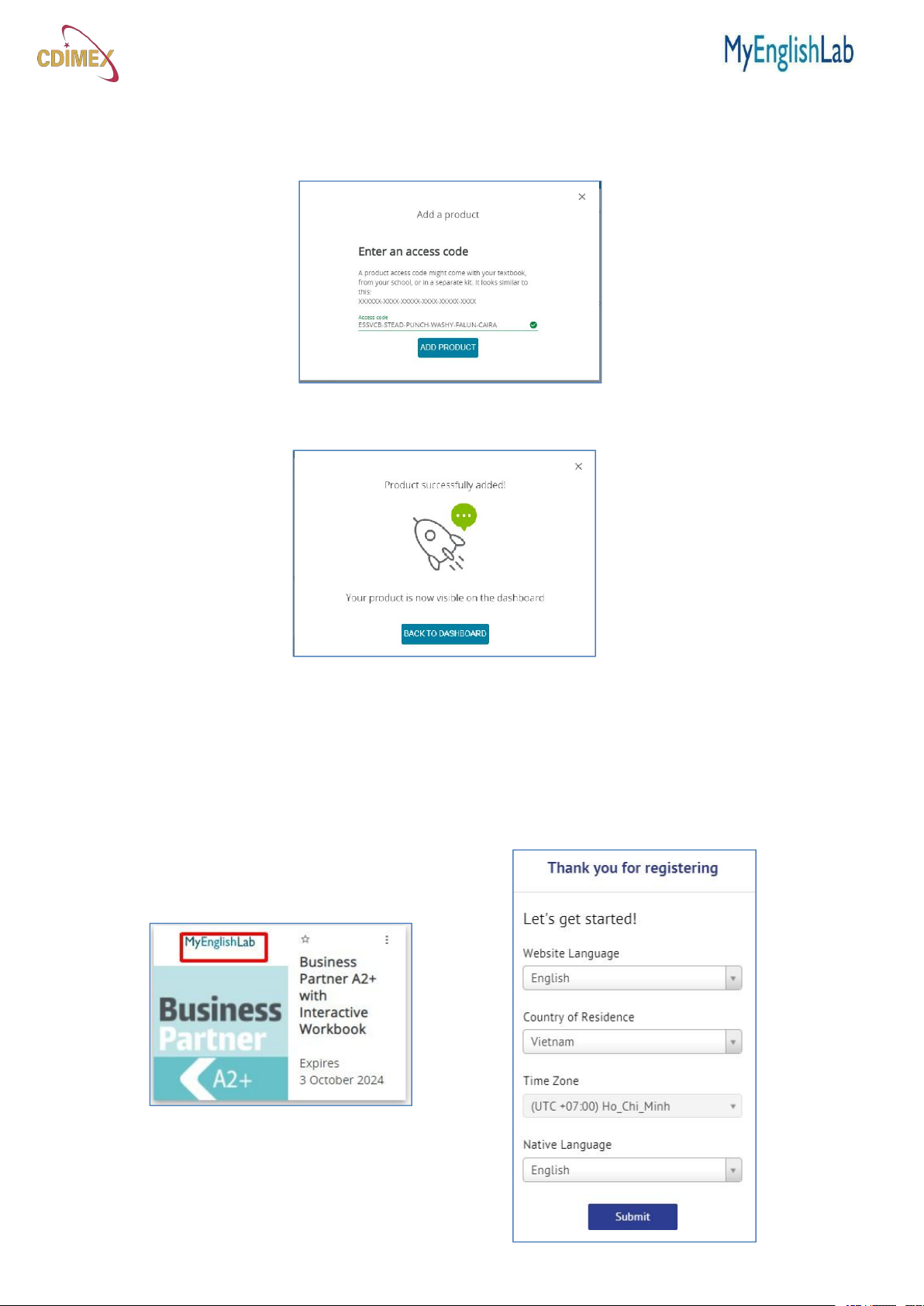 2. Nhập mã code được cào ra từ cuốn sách để đến với giao diện MyEnglishLab.