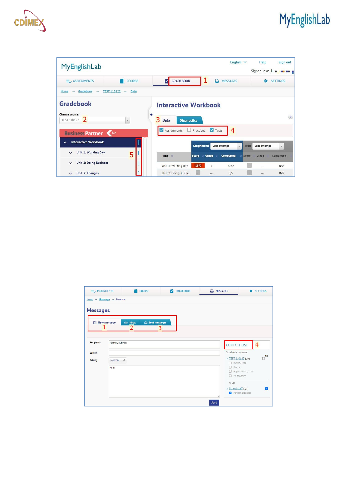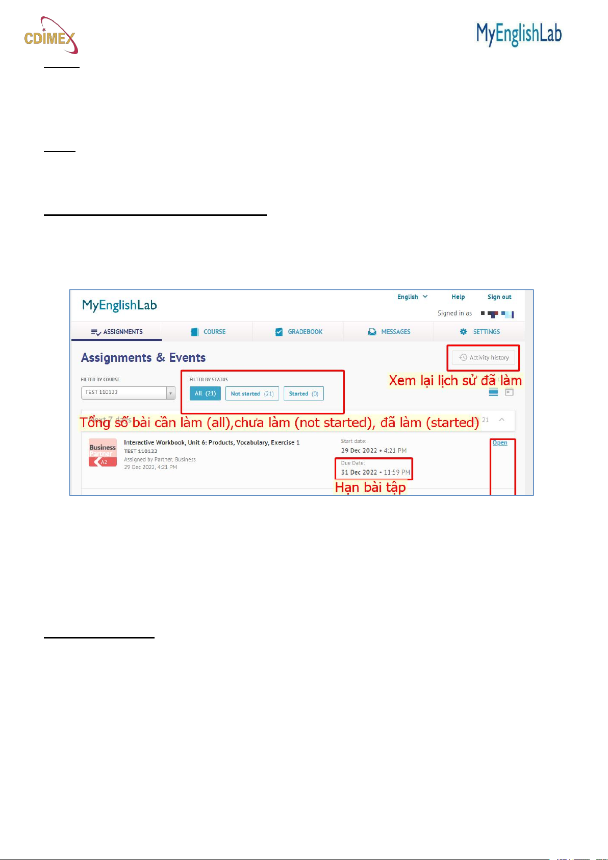 điểm số của mình trong tab GradeBook. Tuy nhiên, một số bài tập Speaking hoặc Writing