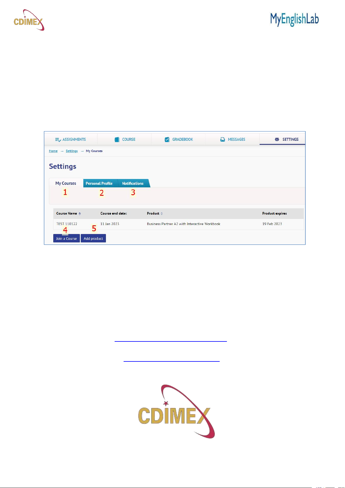 3. Notifications - Thông báo: Cho phép bạn đặt tùy chọn email về thông báo tự động từ MyEnglishLab.