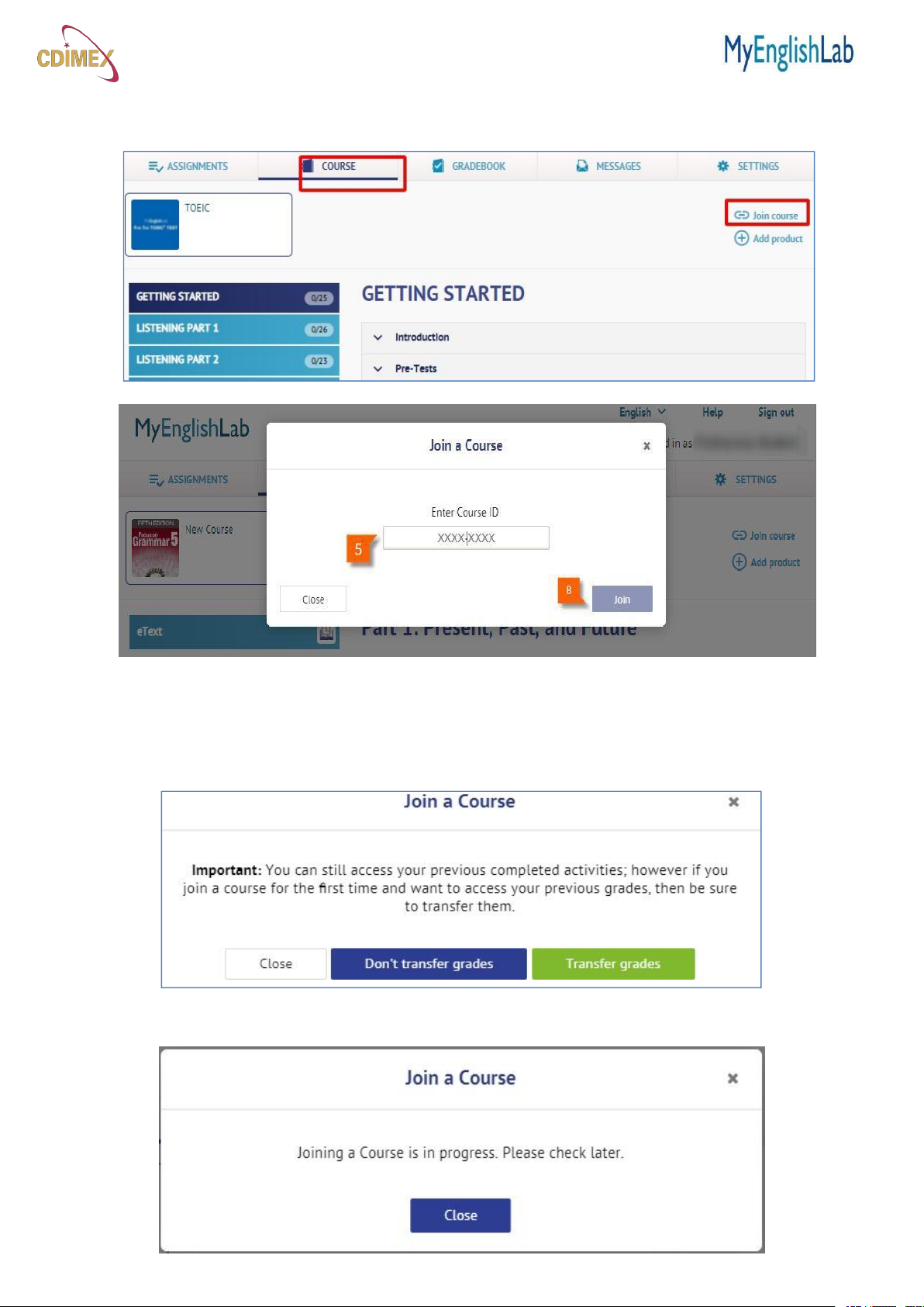 4. Join a Course - Tham gia một khóa học: Cho phép bạn tham gia khóa học từ giảng viên.