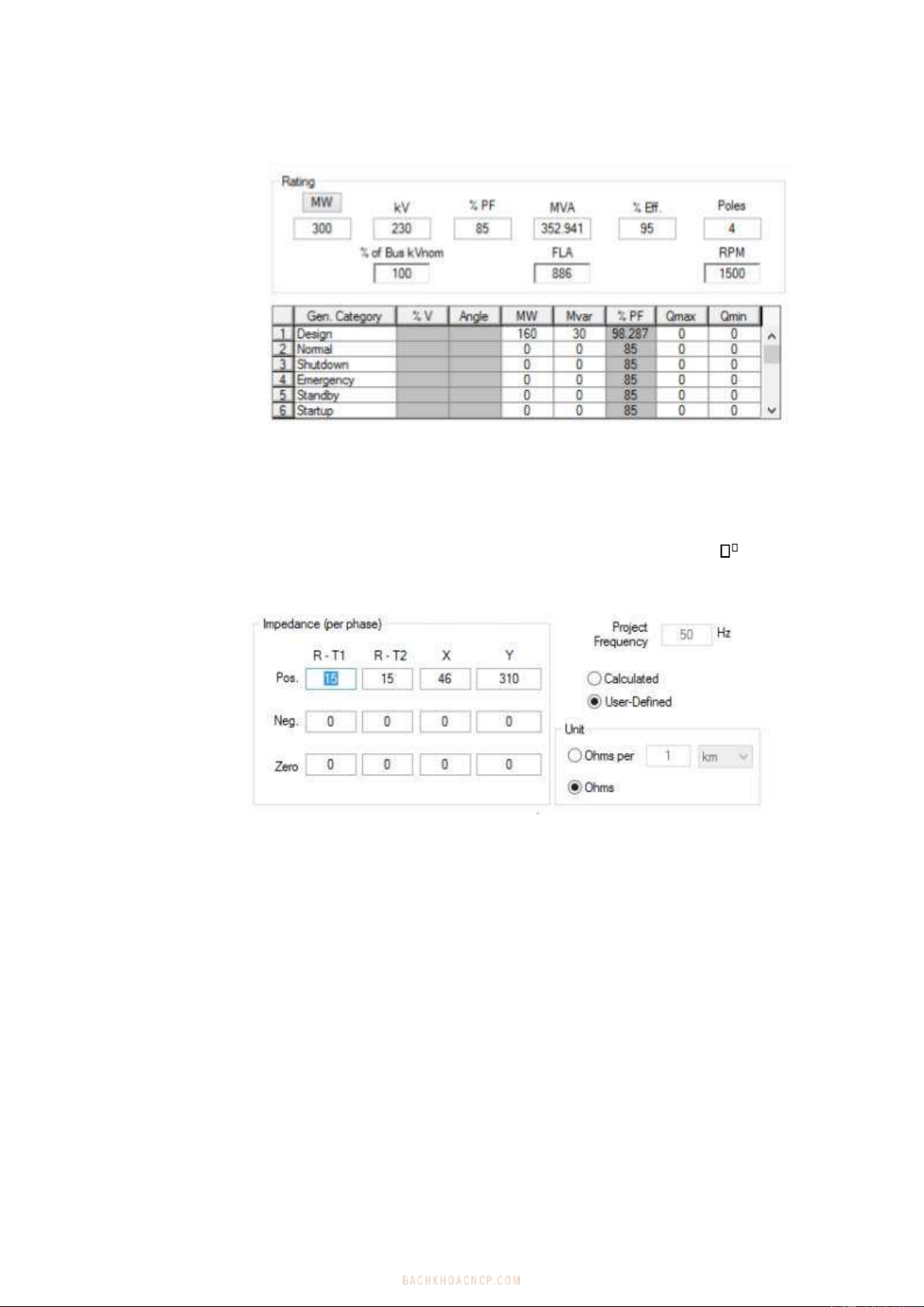Phụ tải: vào trang Nameplate mục Rated kV nhập 230, mục Rating nhập