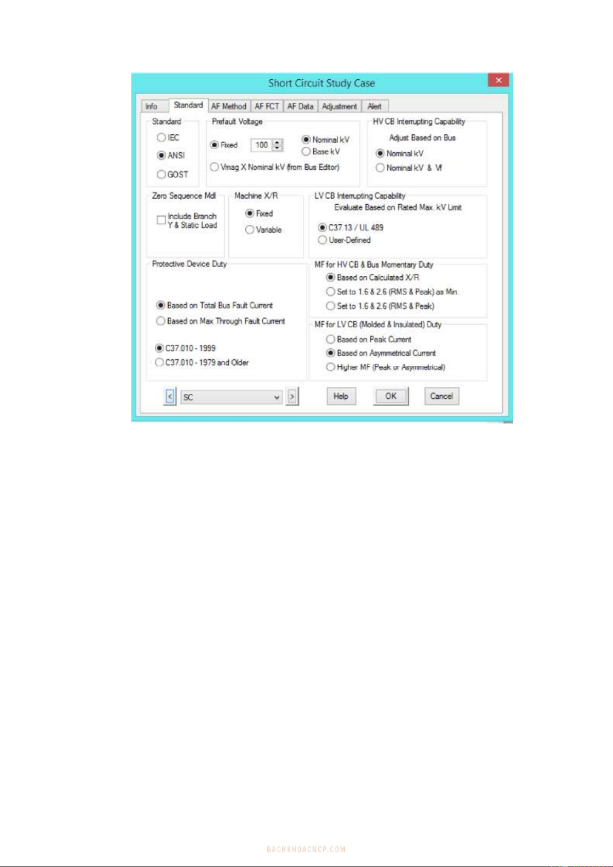 Ở chức năng này Etap cung cấp chức năng tính ngắn mạch theo 2 tiêu chuẩn