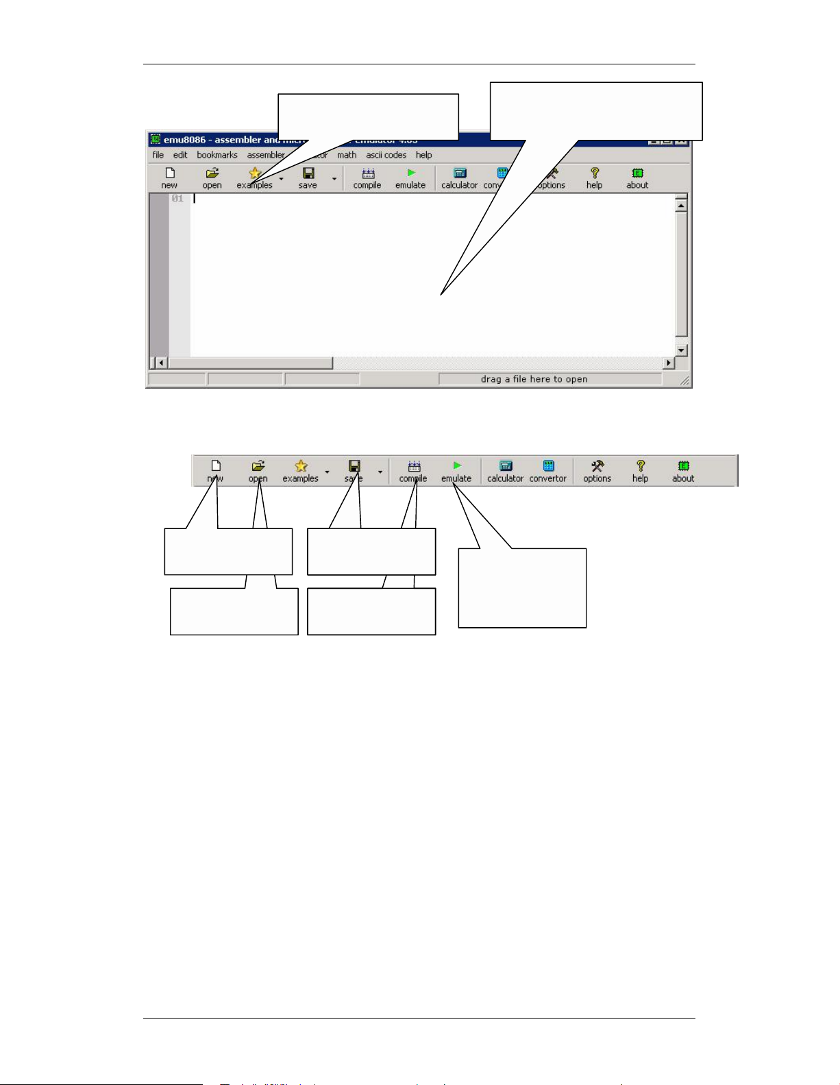 Sử dụng thanh công cụ chuẩn: New: tạo file mới Save: lưu trữ file Emulate: biên dịch và thực hiện mô Open: mở file có Compile: biên phỏng sẵn dịch file