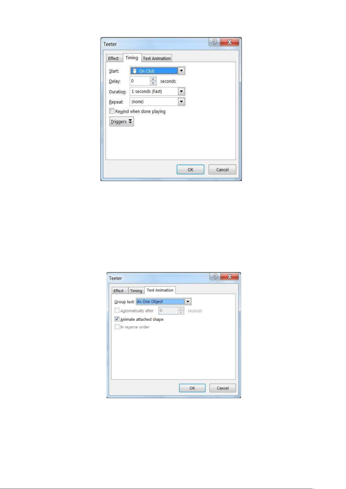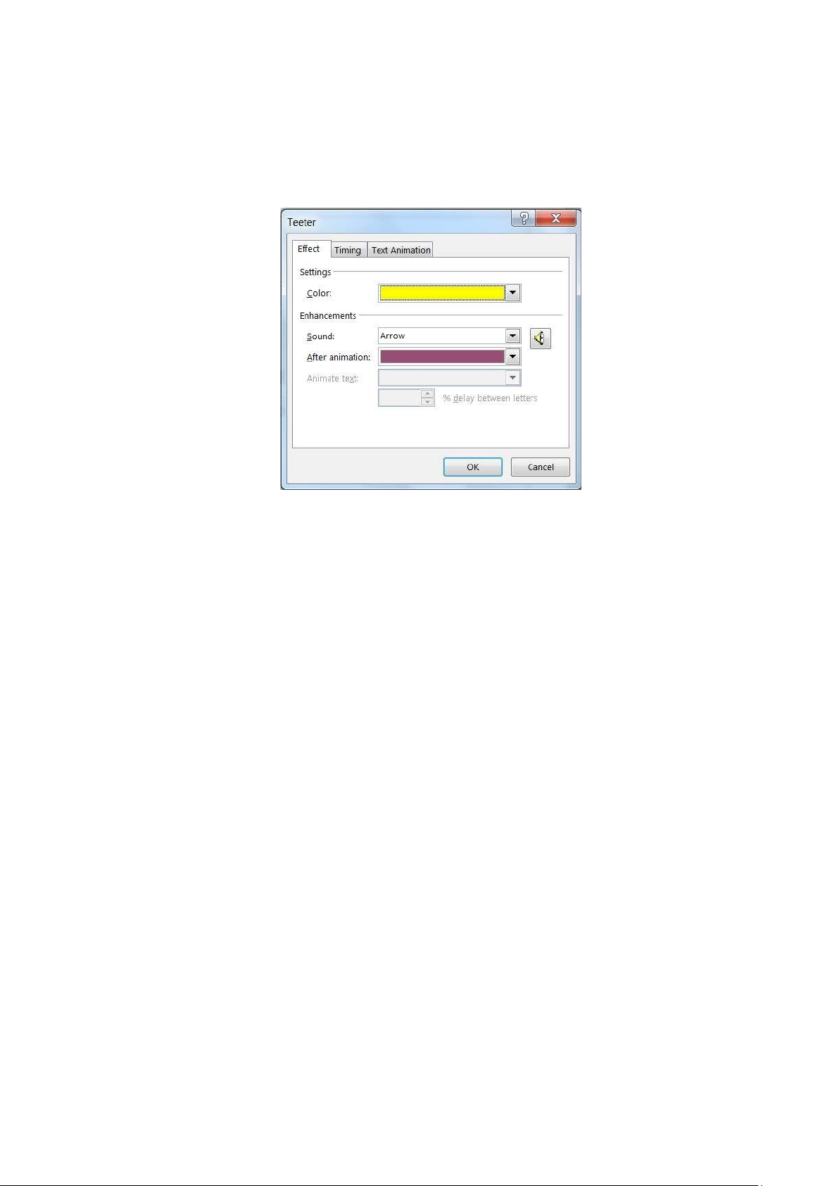 • Rewind when done playing: ối tượng ược trả về nơi xuất phát sau khi thực hiện hiệu ứng lOMoAR cPSD| 40551442 Hình 5.22 Tab Timing - Tab Text Animation: