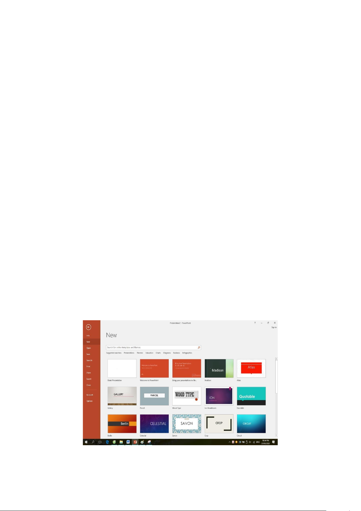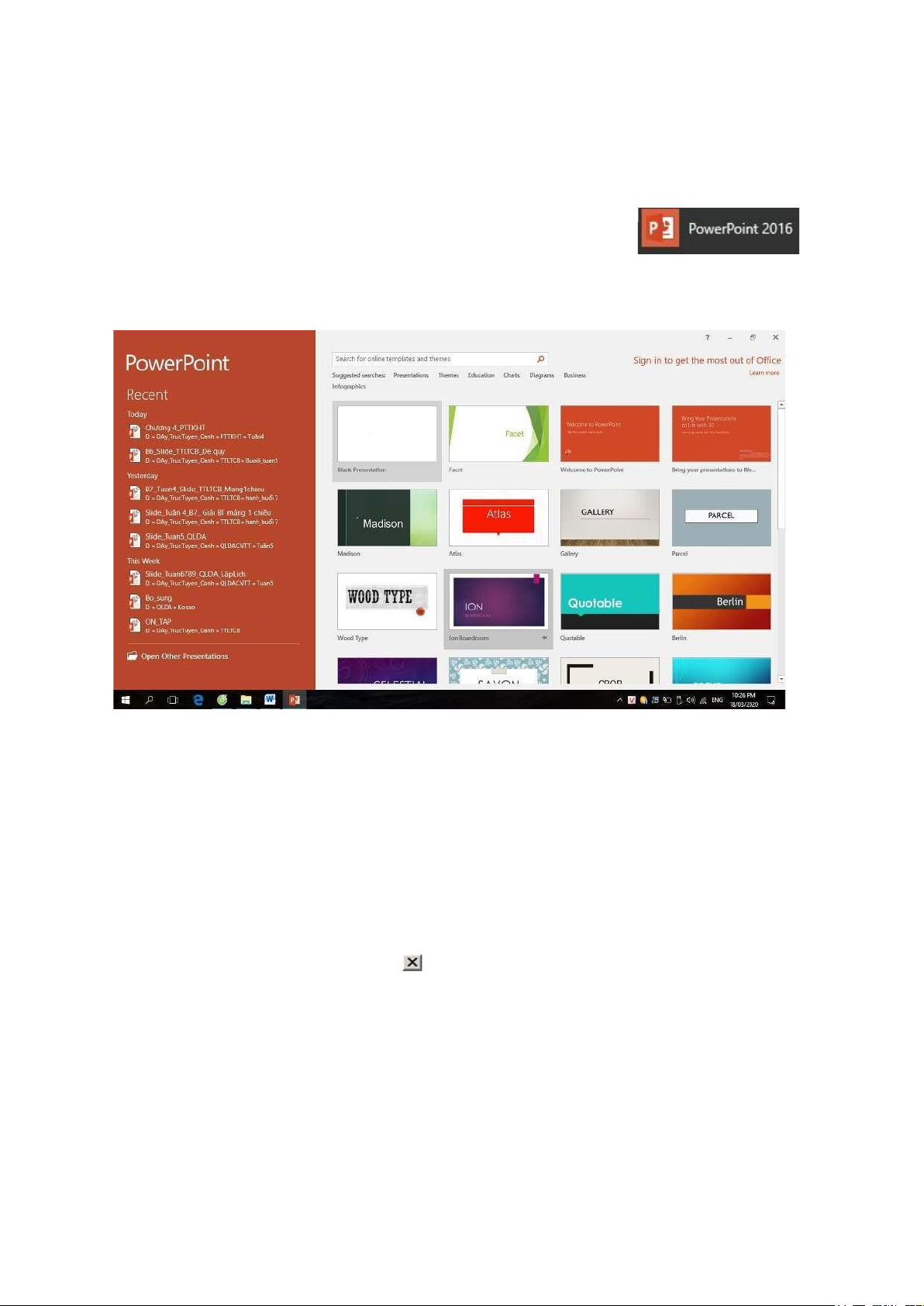- Chọn Blank Presentation ể tạo trình chiếu mới - Chọn các template (mẫu) theo chủ ề.