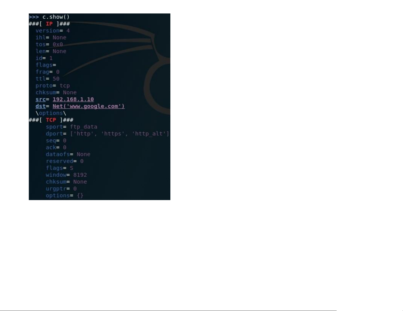 được chọn, thông tin mong muốn có thể thu được. Không giống như nhiều công cụ, Scapy cung cấp tất cả thông tin, tức là