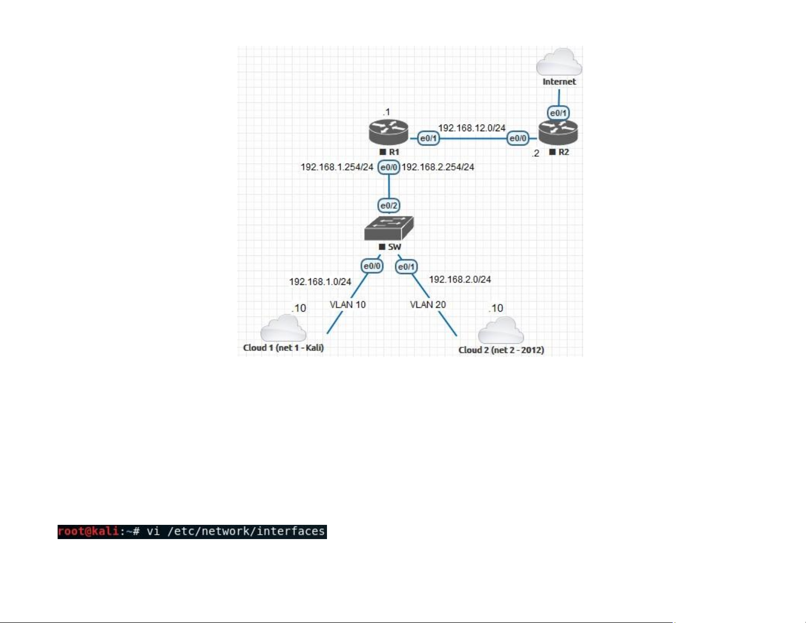 - Cấu hình các thông tin như VLAN, định tuyến. Đảm bảo Kali và 2012 kết nối Internet thành công.