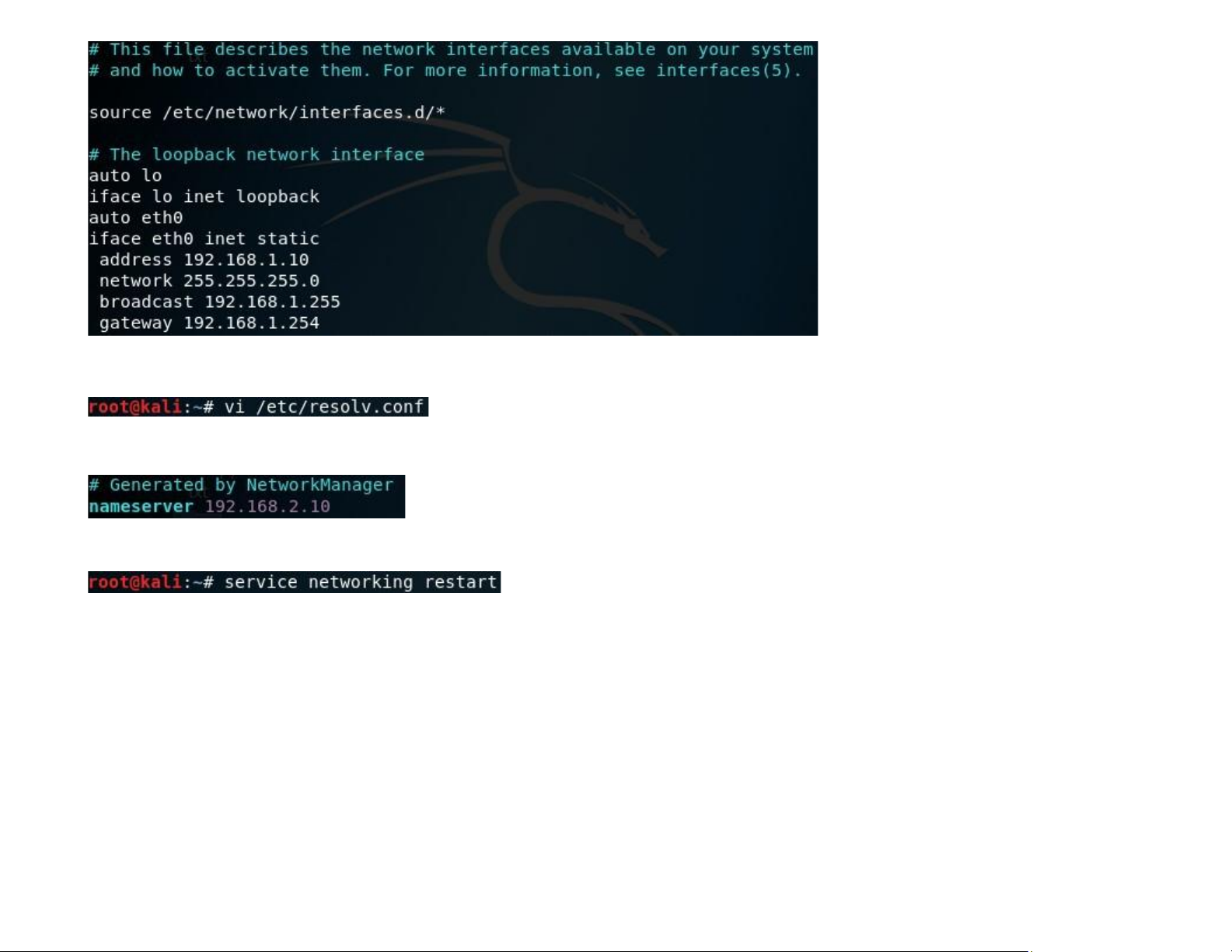 - Các lệnh cấu hình IP trên kali: + File cấu hình IP: