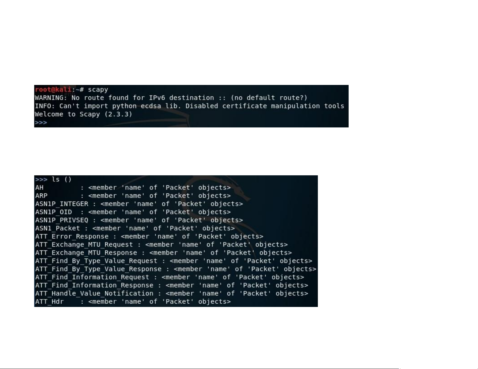 - Để mở scapy thì từ terminal của Kali dùng lệnh “scapy”: