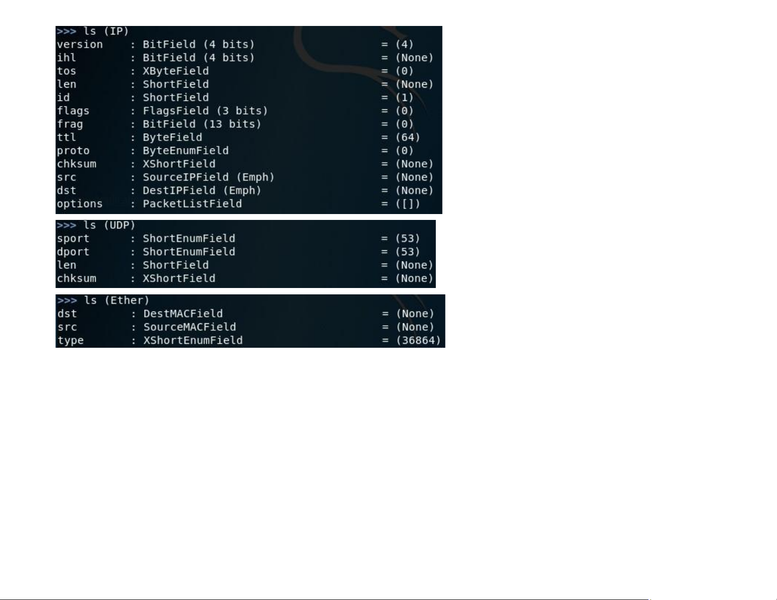 trong danh sách các lớp của scapy (có thể dùng lệnh ls () để xem lại). “IP” được viết hoa hay viết thường cũng tùy thuộc vào